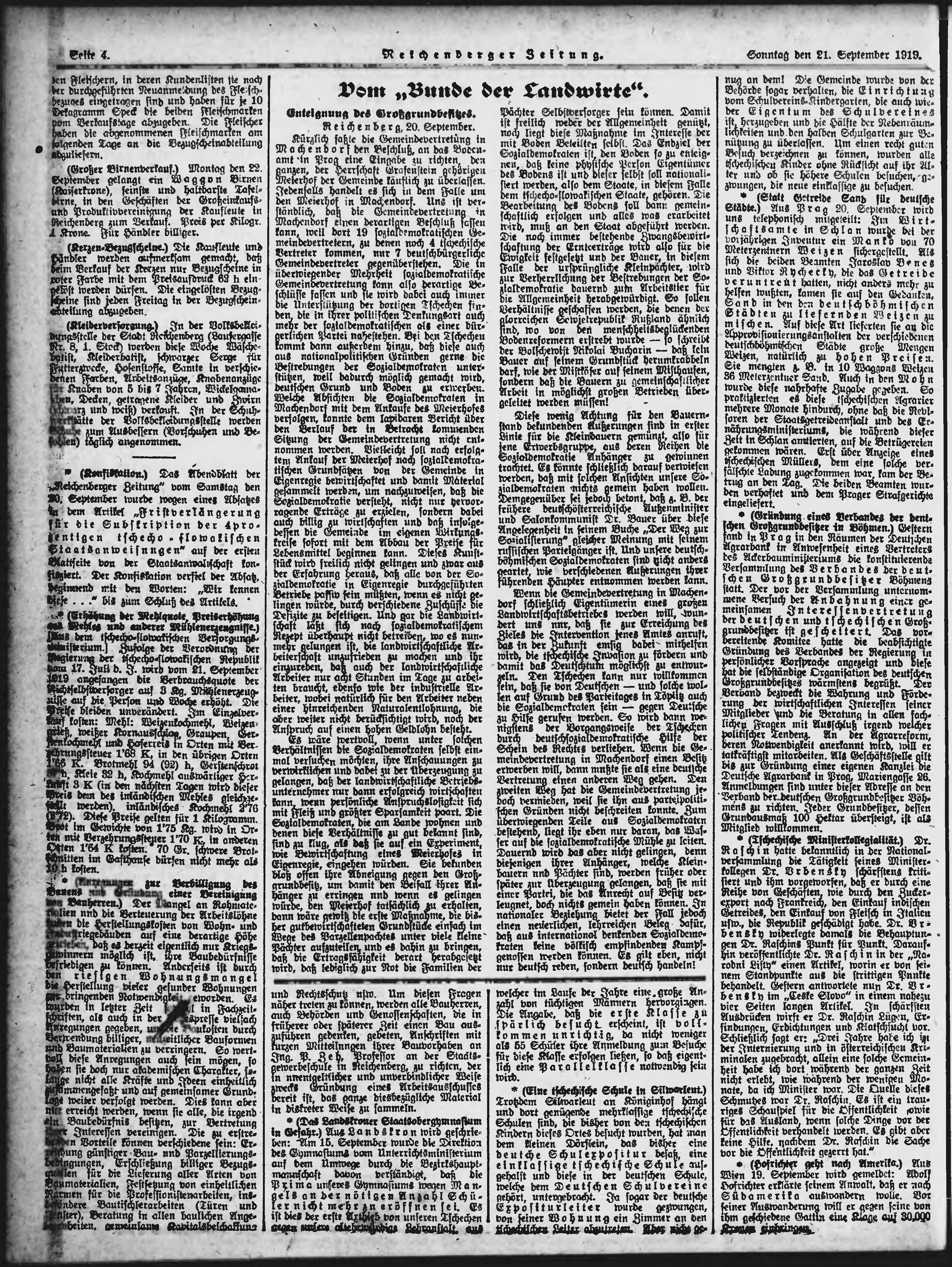 * Datum vydání výtisku: 21.9.1919 Číslo výtisku: 220 Poznámky k výtisku: ranní vydání;