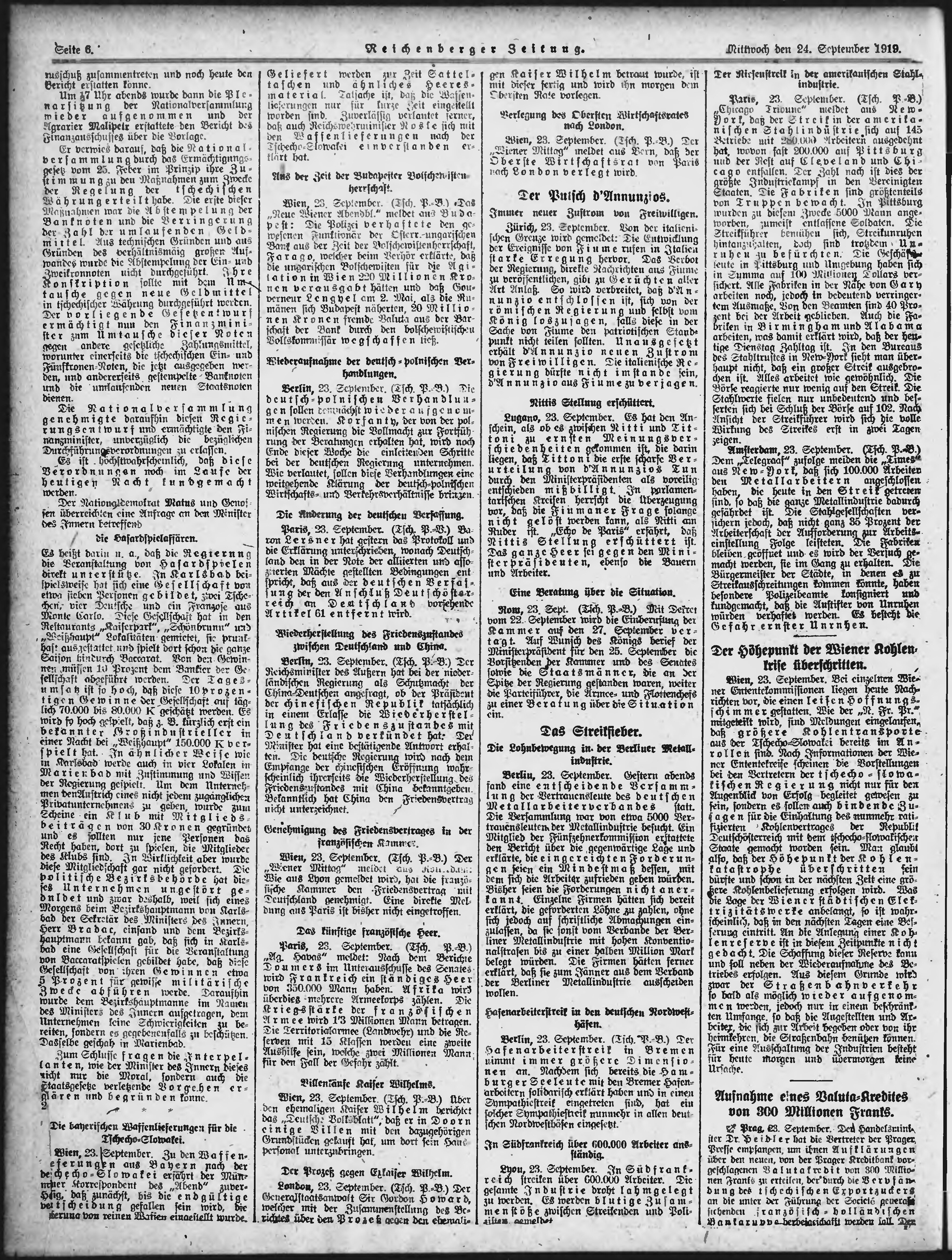 * Datum vydání výtisku: 24.9.1919 Číslo výtisku: 222 Poznámky k výtisku: ranní vydání;