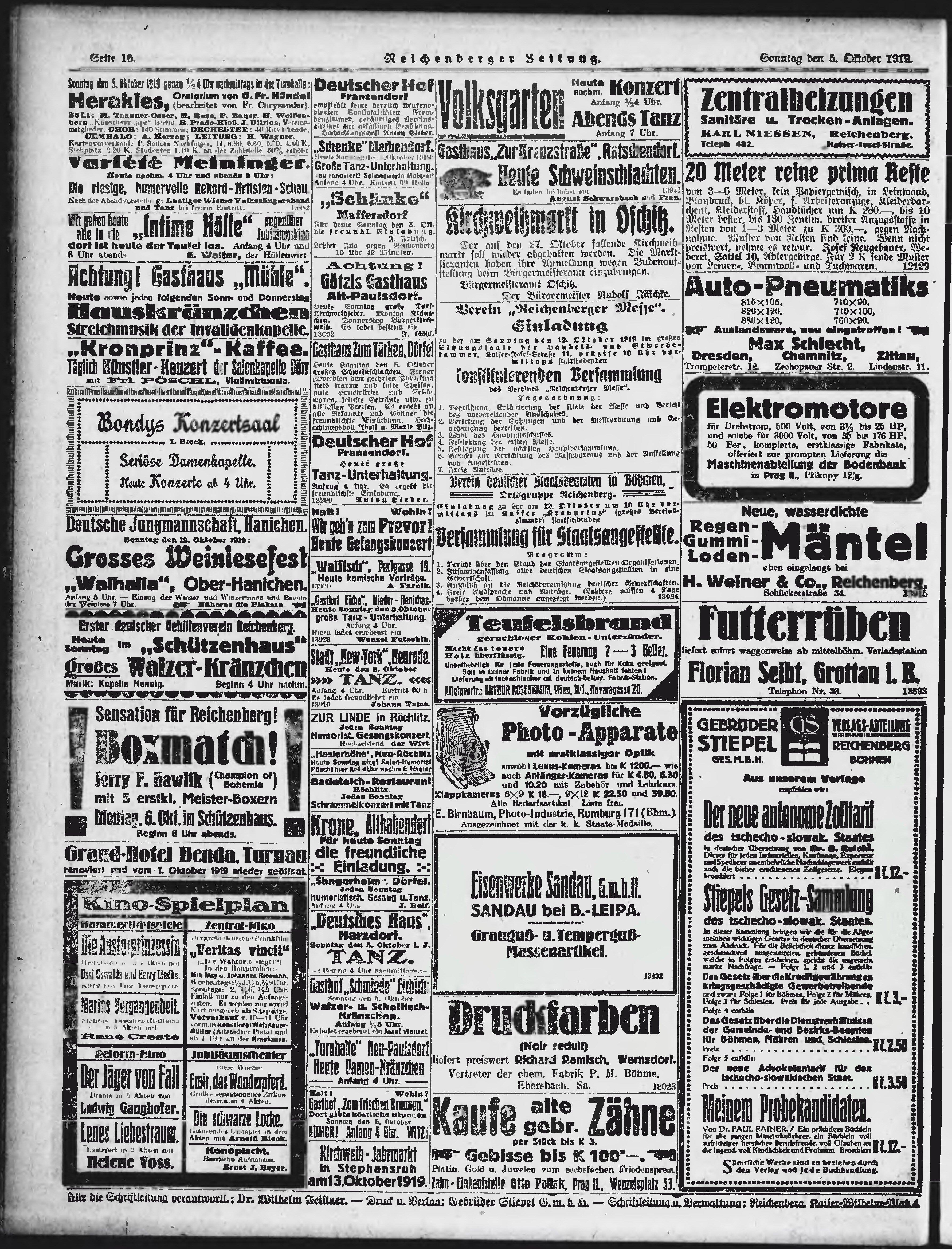 * Datum vydání výtisku: 5.10.1919 Číslo výtisku: 232 Poznámky k výtisku: ranní vydání;