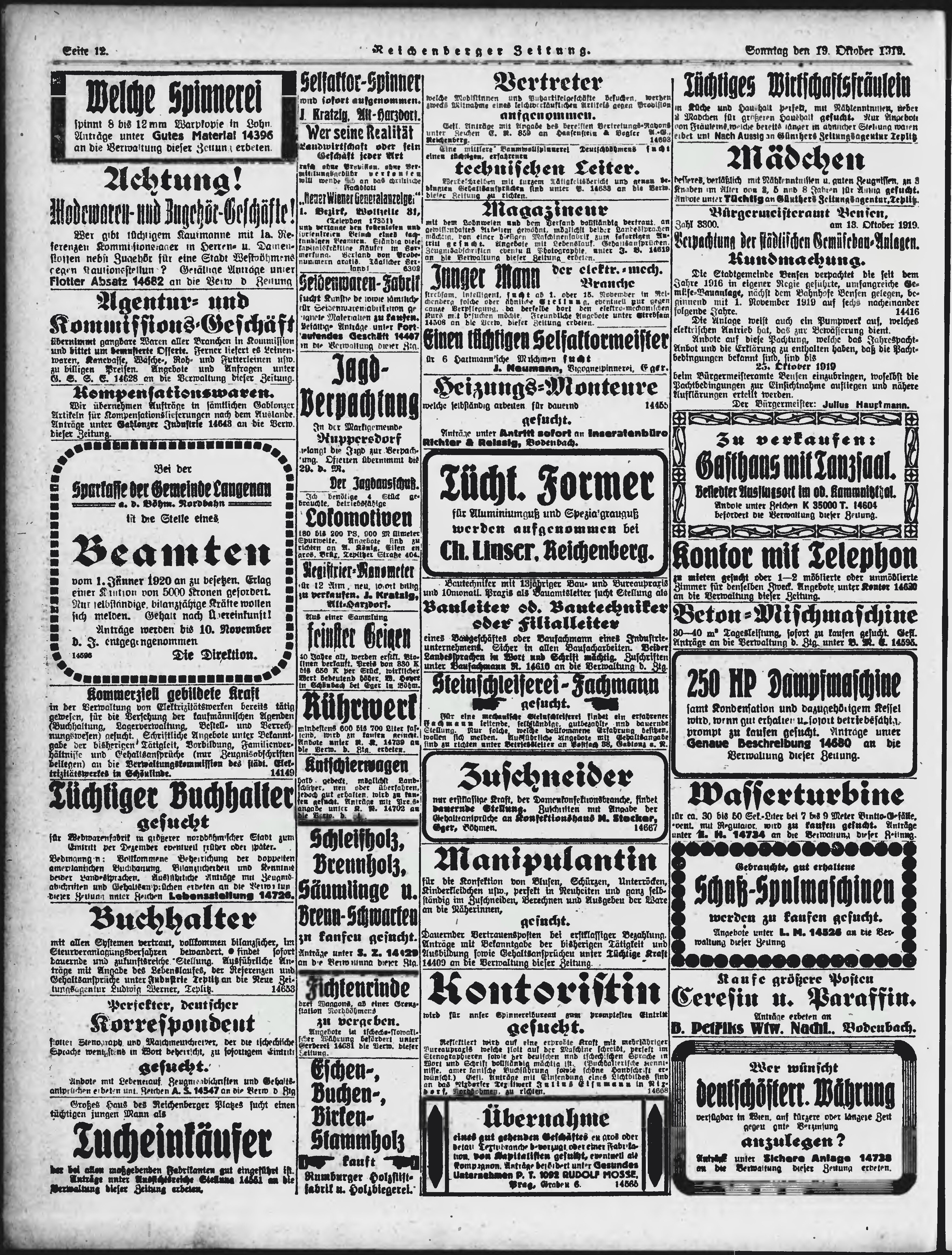 * Datum vydání výtisku: 19.10.1919 Číslo výtisku: 244 Poznámky k výtisku: ranní vydání;