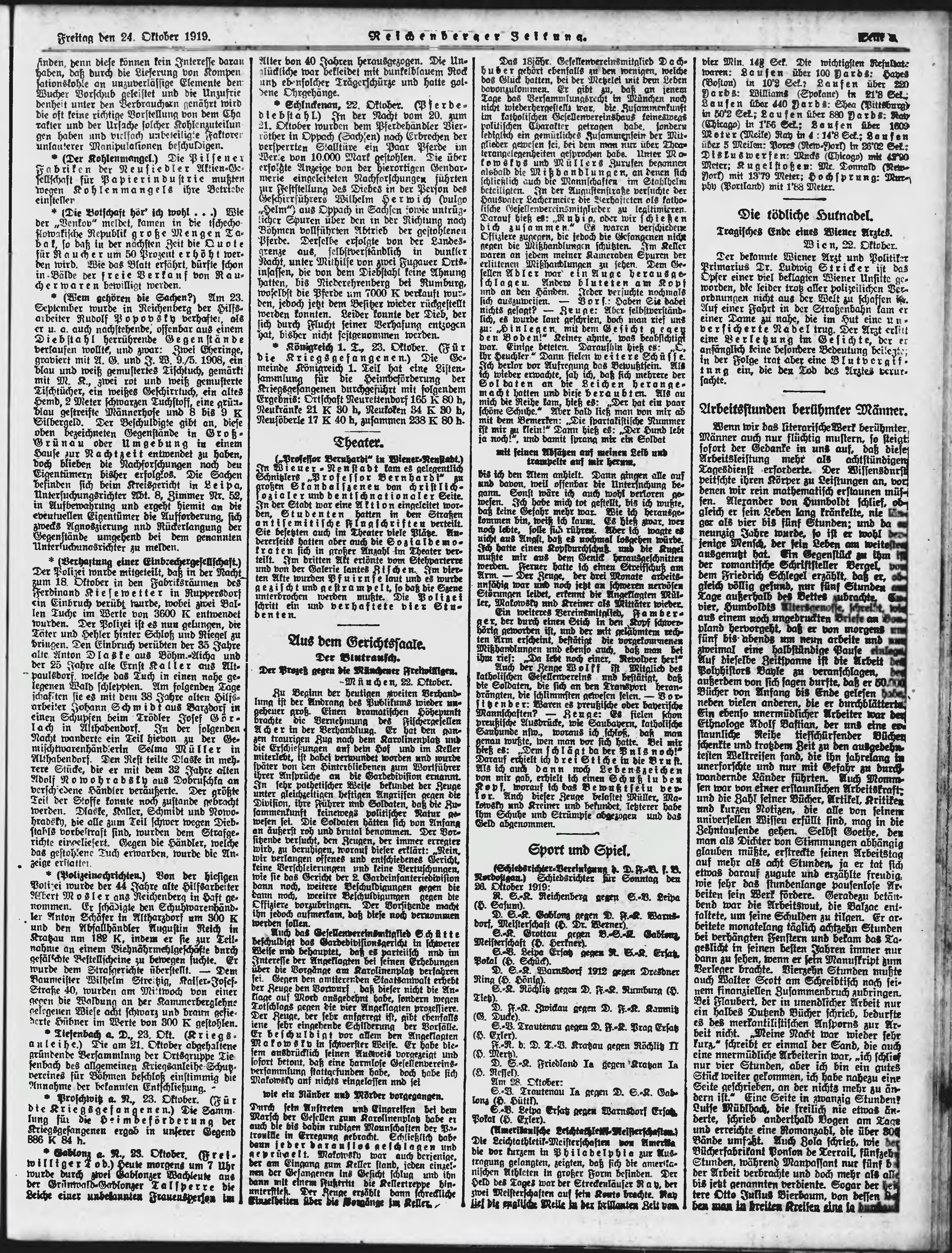 * Datum vydání výtisku: 24.10.1919 Číslo výtisku: 249 Typ výtisku: příloha Poznámky k výtisku: večerní vydání;
