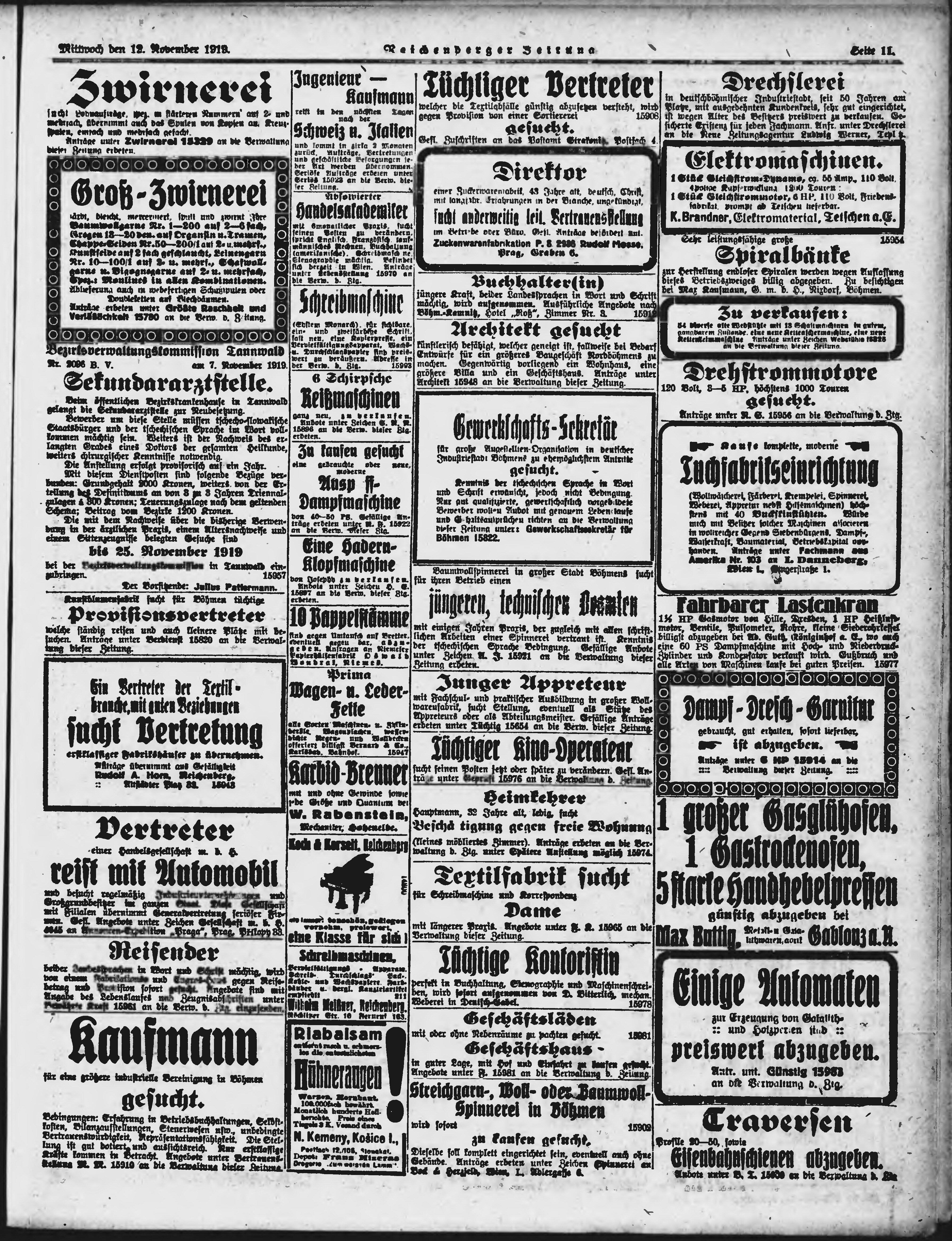 * Datum vydání výtisku: 12.11.1919 Číslo výtisku: 262 Poznámky k výtisku: ranní vydání;