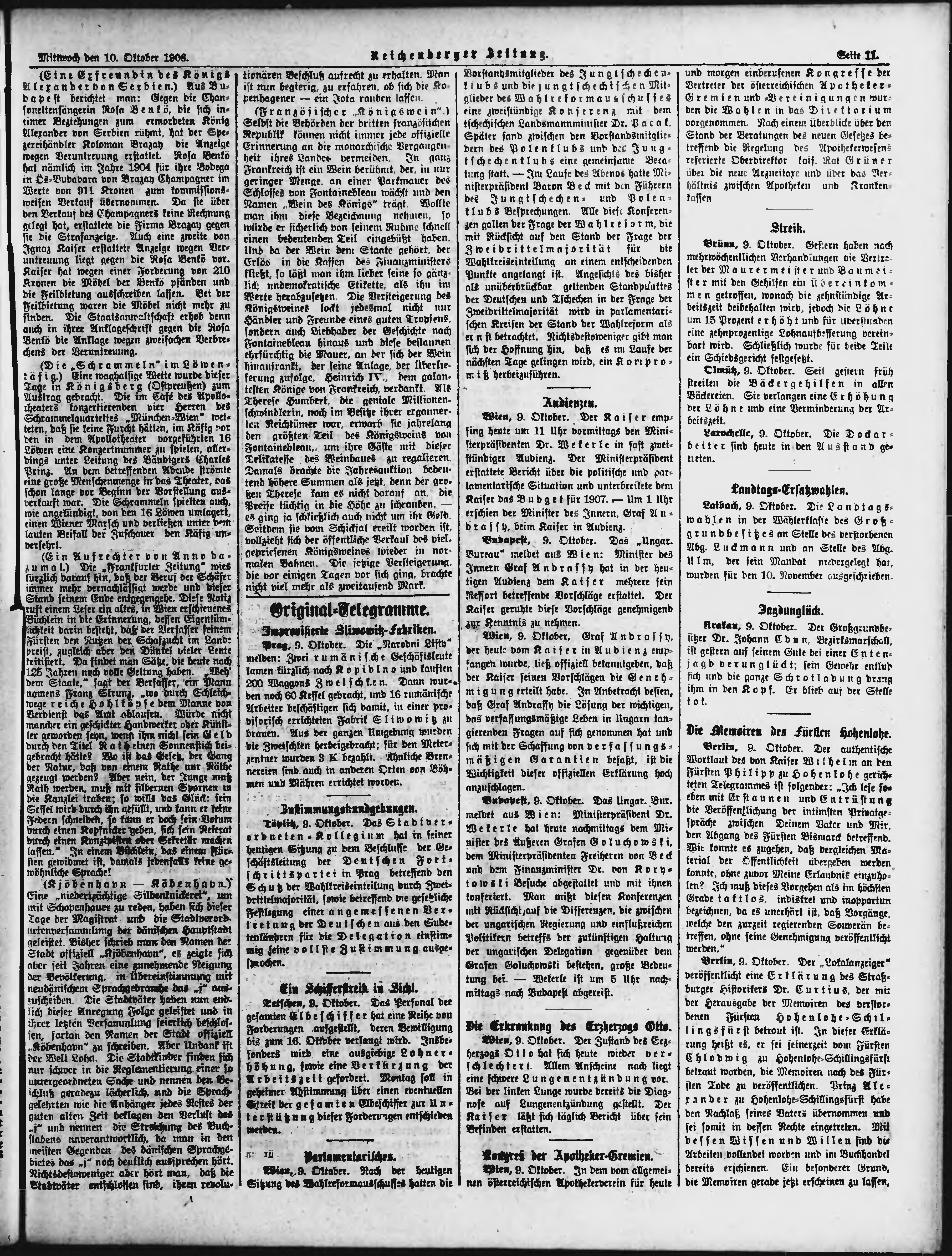 * Datum vydání výtisku: 10.10.1906 Číslo výtisku: 240 Poznámky k výtisku: ranní vydání;