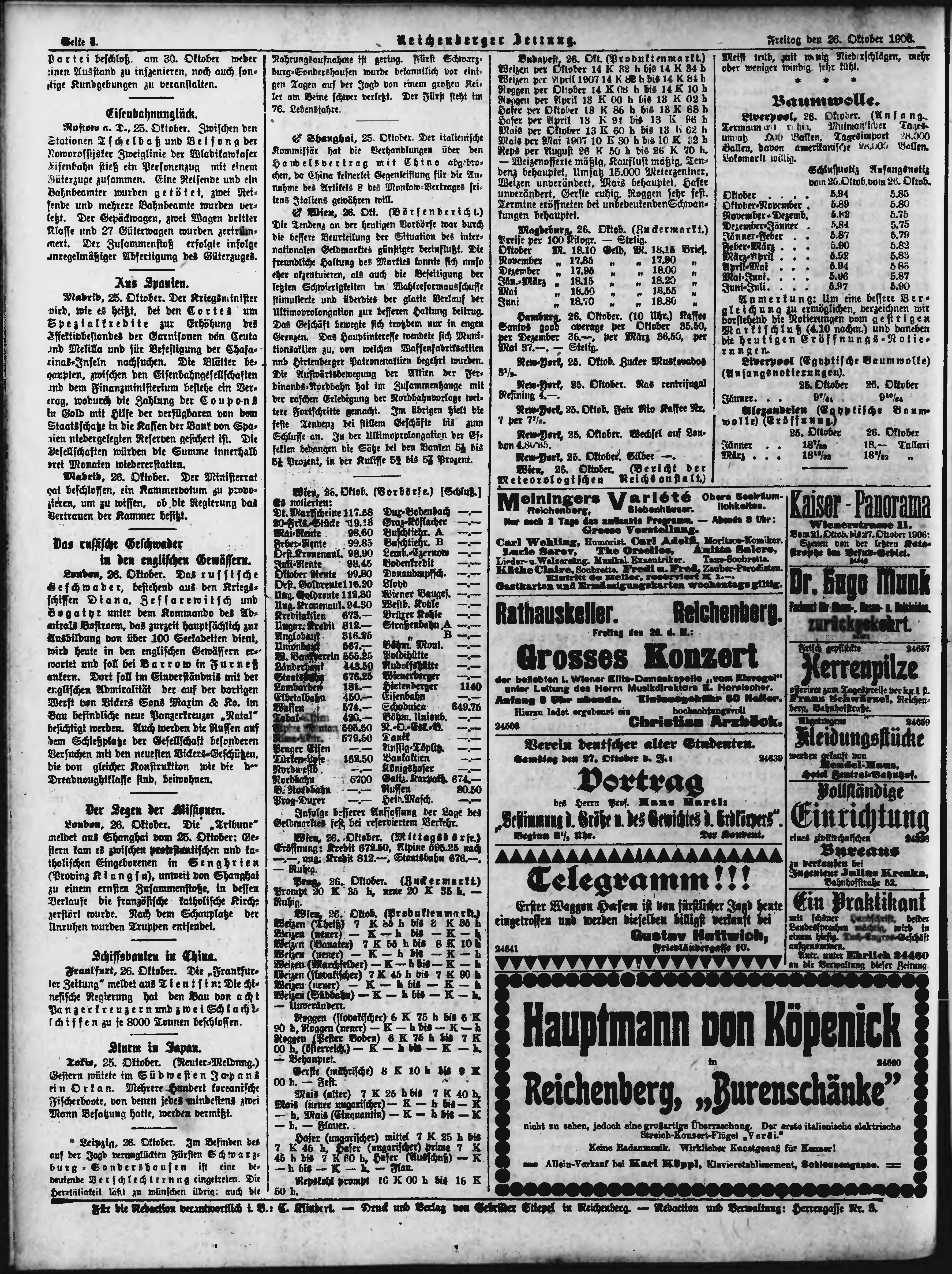 * Datum vydání výtisku: 26.10.1906 Číslo výtisku: 255 Typ výtisku: příloha Poznámky k výtisku: večerní vydání;