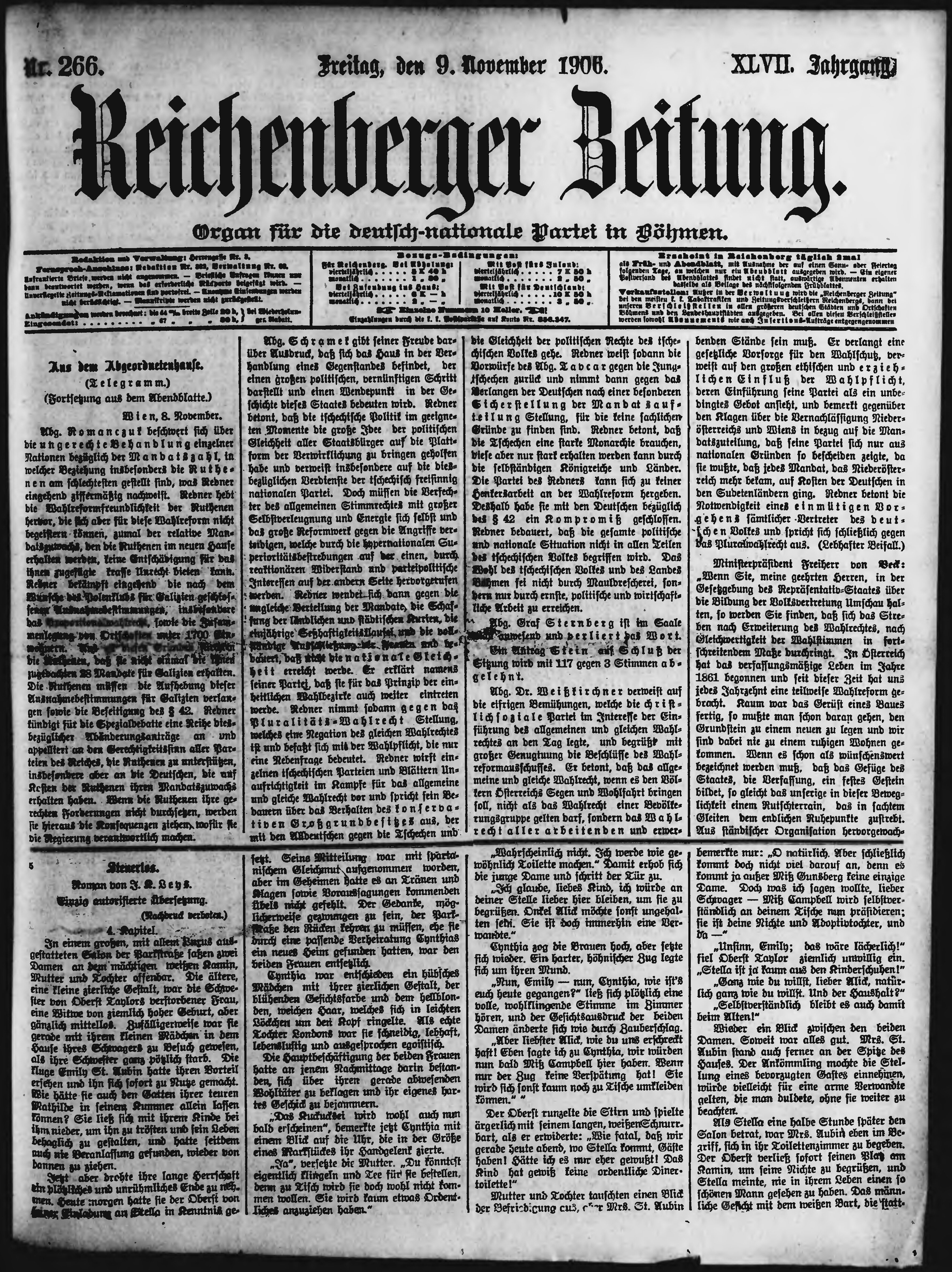 * Datum vydání výtisku: 9.11.1906 Číslo výtisku: 266 Poznámky k výtisku: ranní vydání;