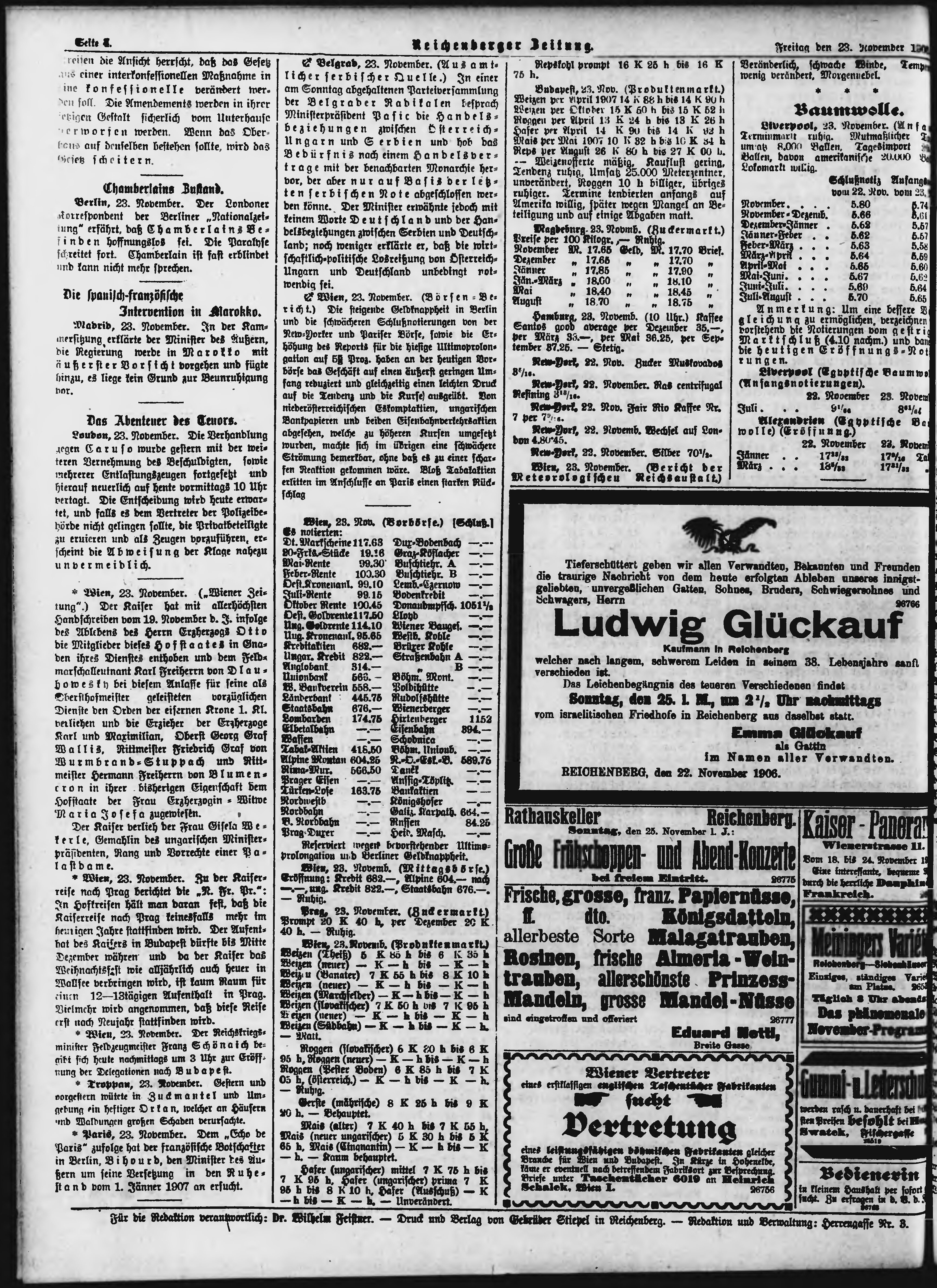 * Datum vydání výtisku: 23.11.1906 Číslo výtisku: 279 Typ výtisku: příloha Poznámky k výtisku: večerní vydání;