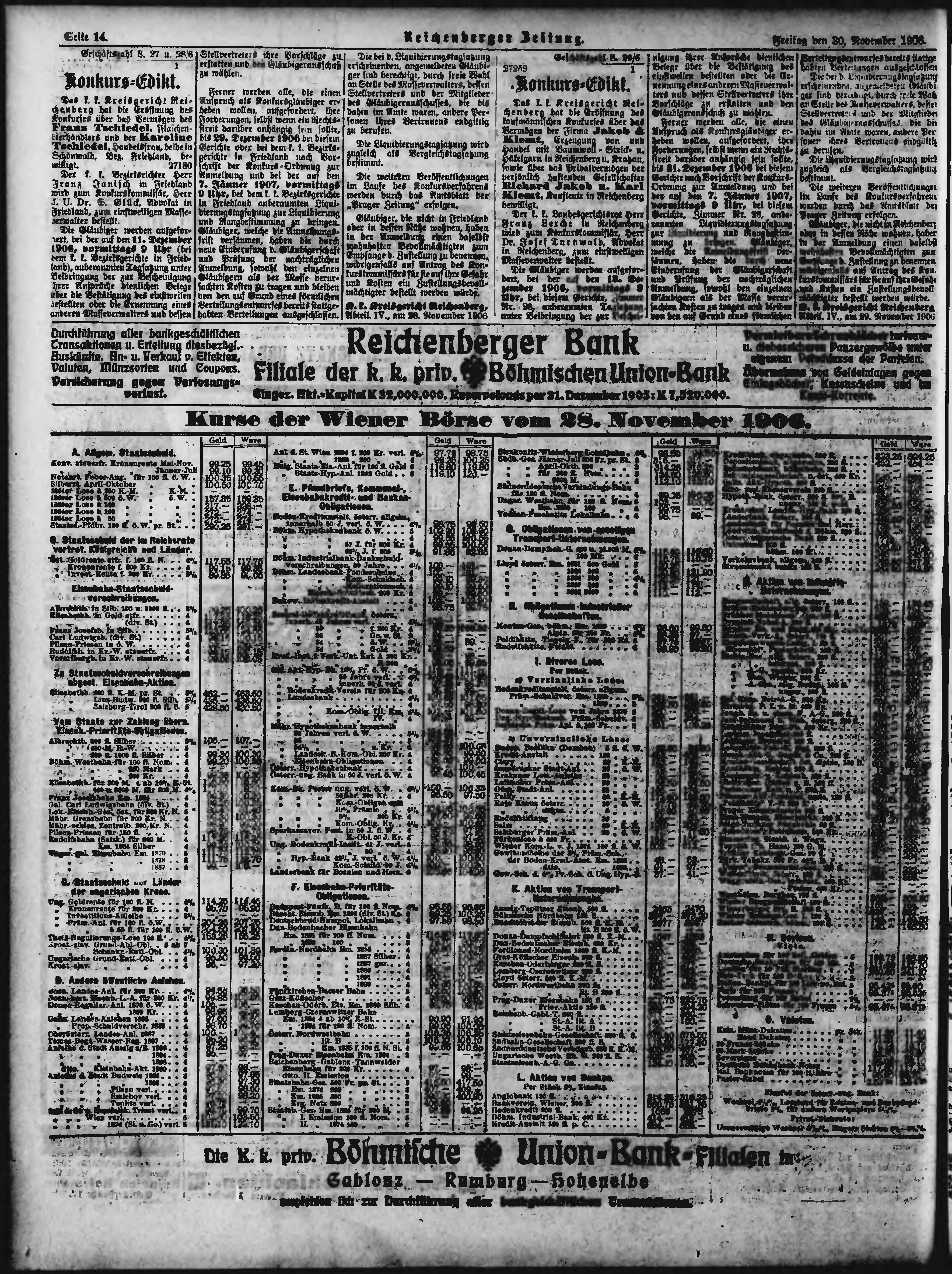 * Datum vydání výtisku: 30.11.1906 Číslo výtisku: 284 Poznámky k výtisku: ranní vydání;