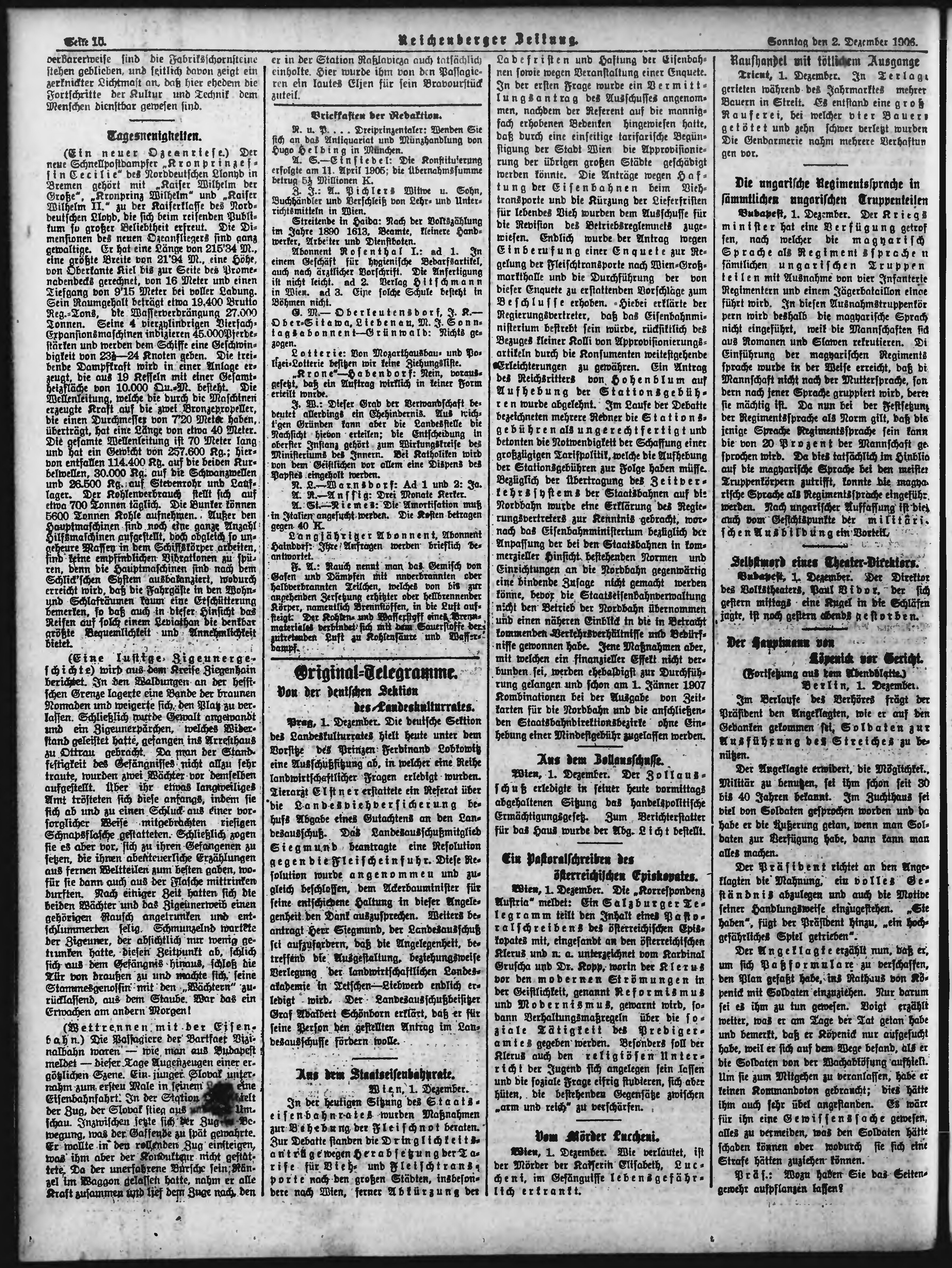 * Datum vydání výtisku: 2.12.1906 Číslo výtisku: 286 Poznámky k výtisku: ranní vydání;
