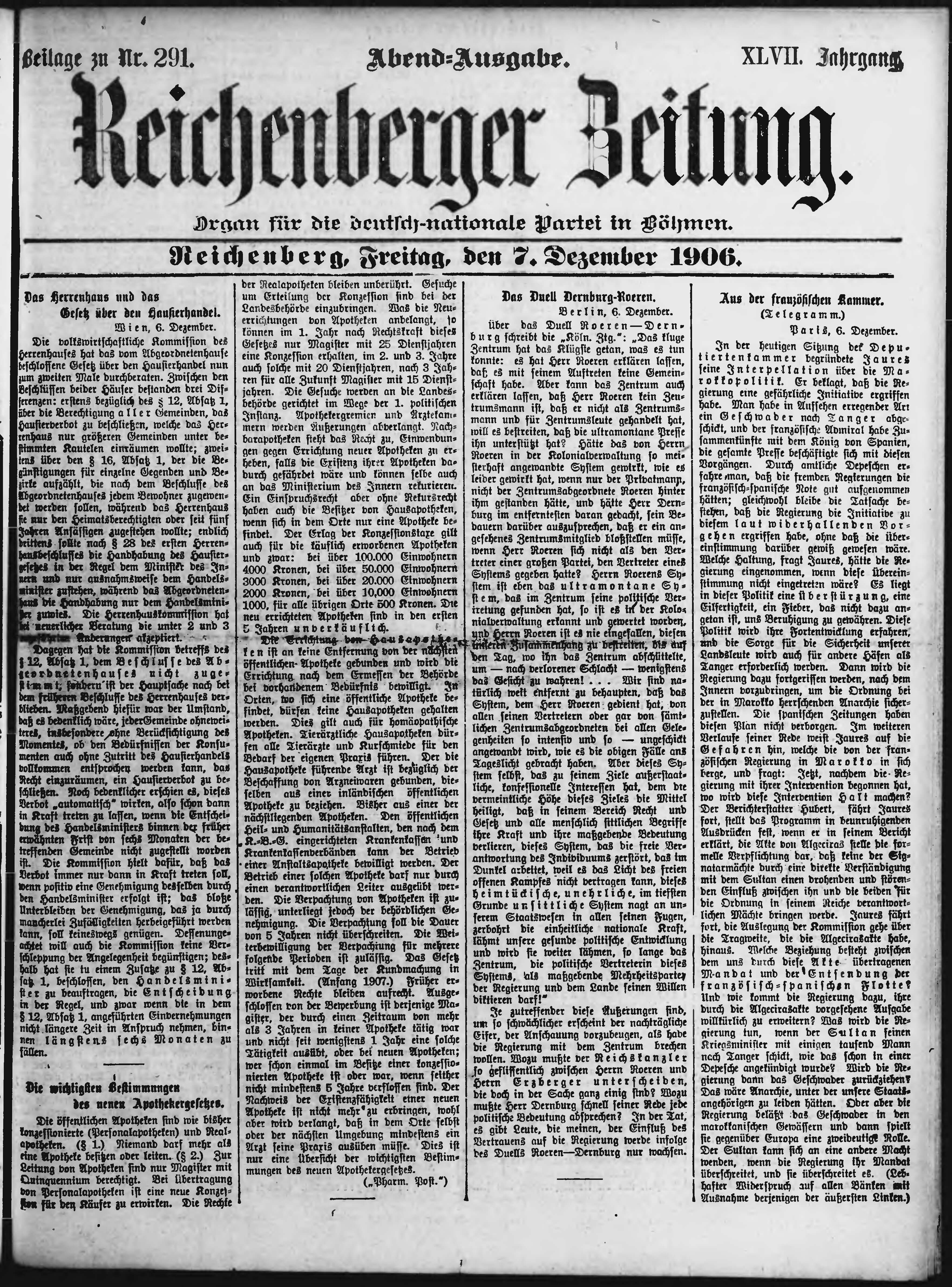 * Datum vydání výtisku: 7.12.1906 Číslo výtisku: 291 Typ výtisku: příloha Poznámky k výtisku: večerní vydání;