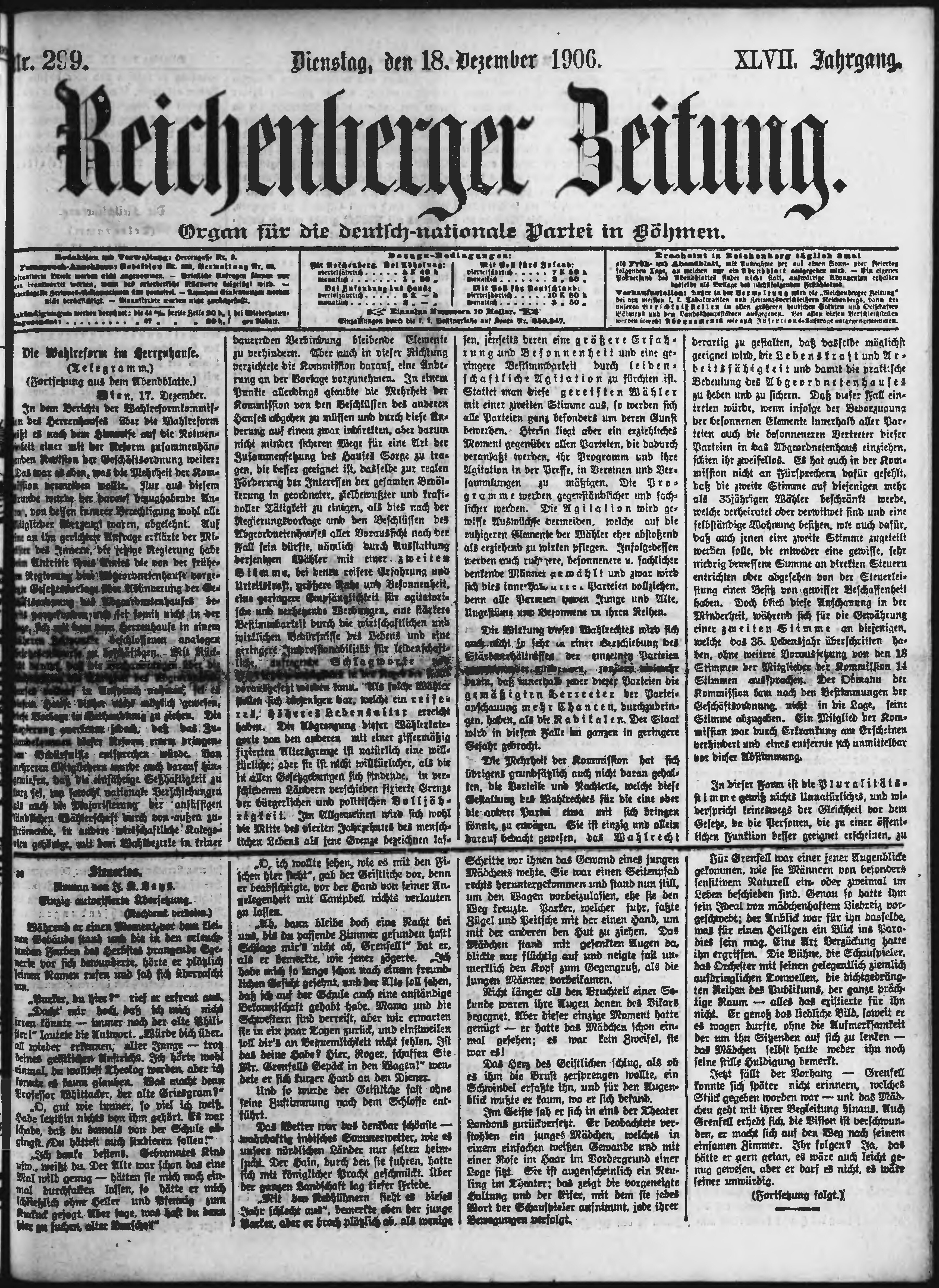 * Datum vydání výtisku: 18.12.1906 Číslo výtisku: 299 Poznámky k výtisku: ranní vydání;
