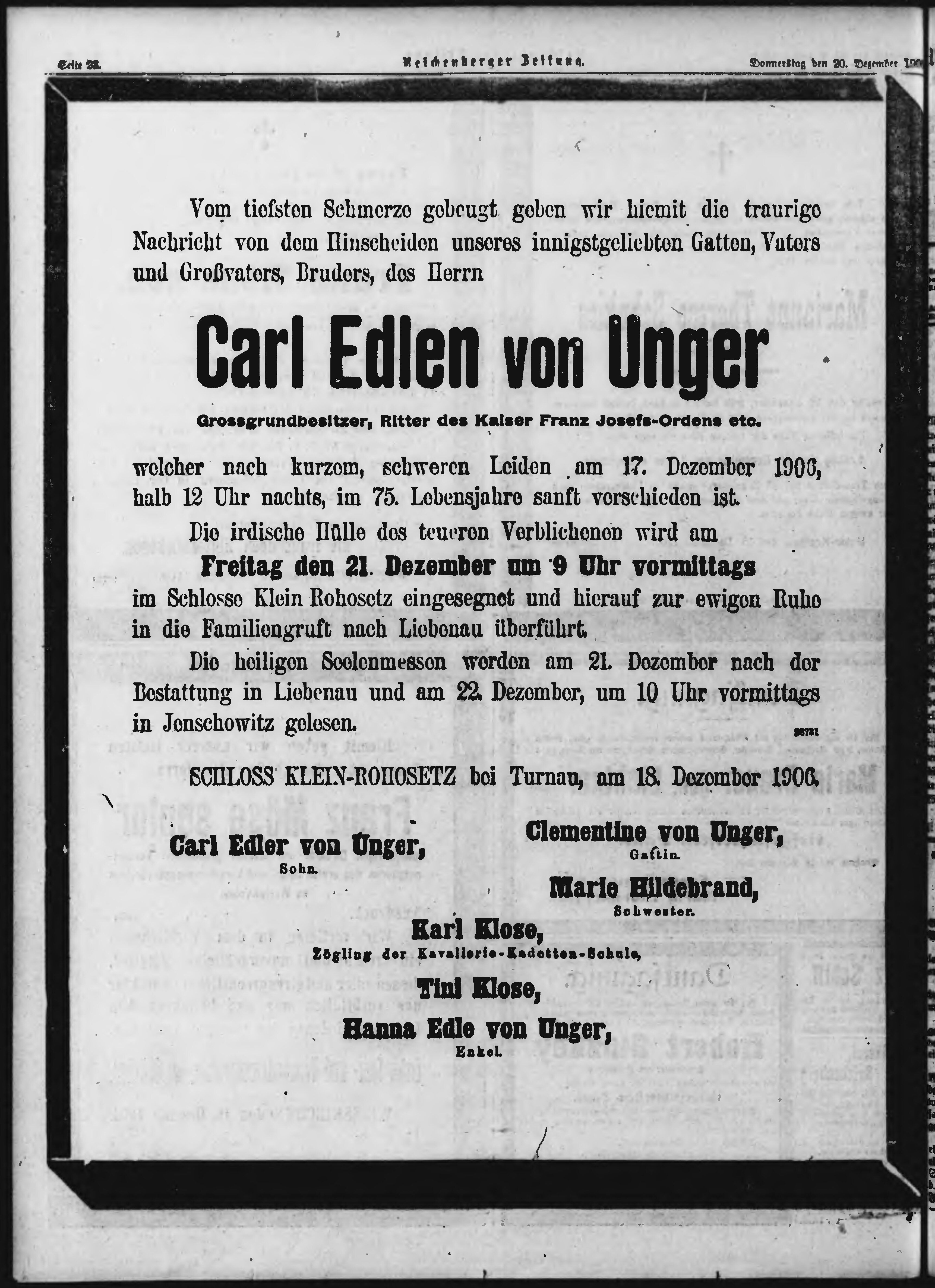 * Datum vydání výtisku: 20.12.1906 Číslo výtisku: 301 Poznámky k výtisku: ranní vydání;