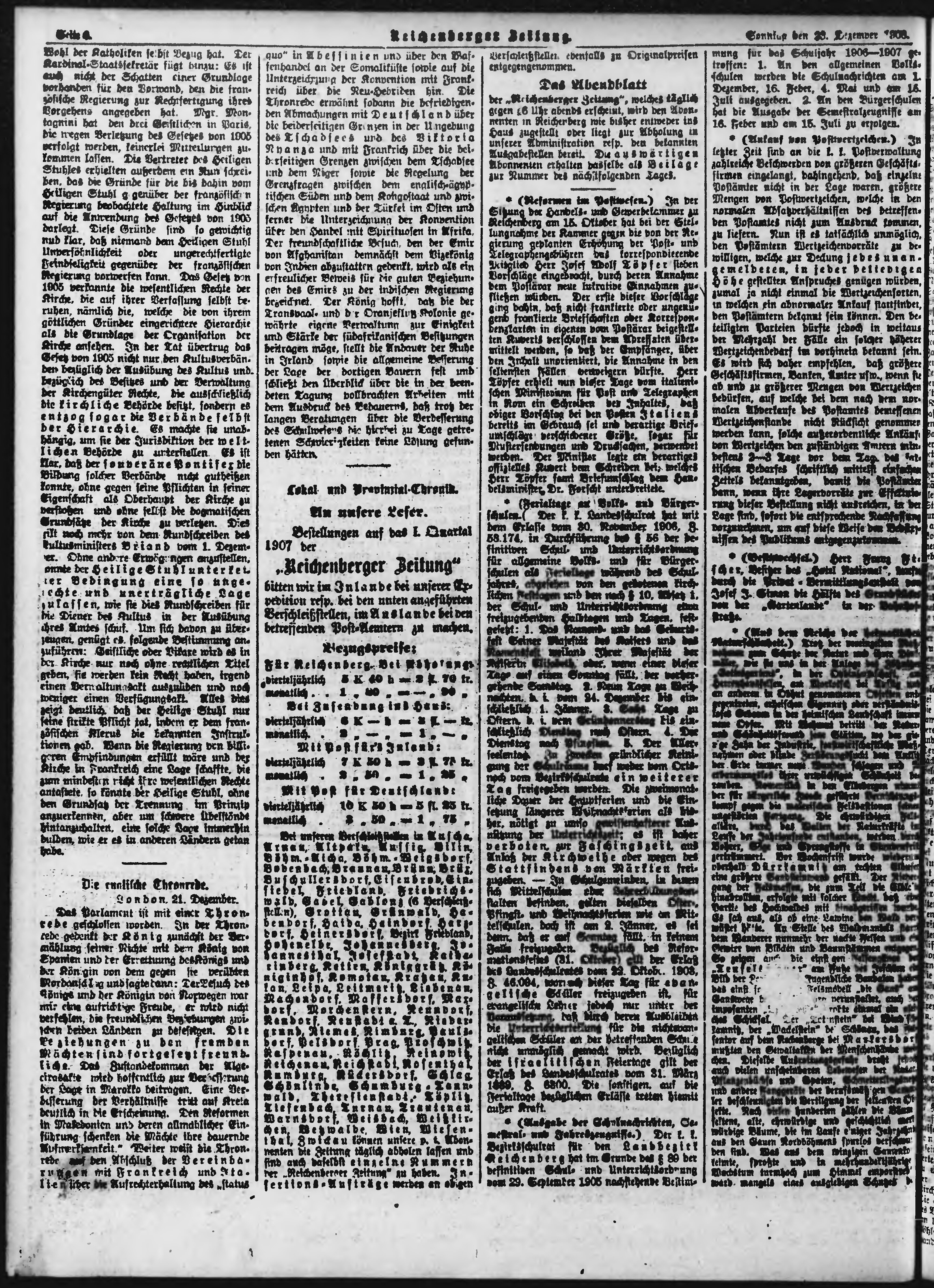 * Datum vydání výtisku: 23.12.1906 Číslo výtisku: 304 Poznámky k výtisku: ranní vydání; s. 13 - 14 není k dispozici;