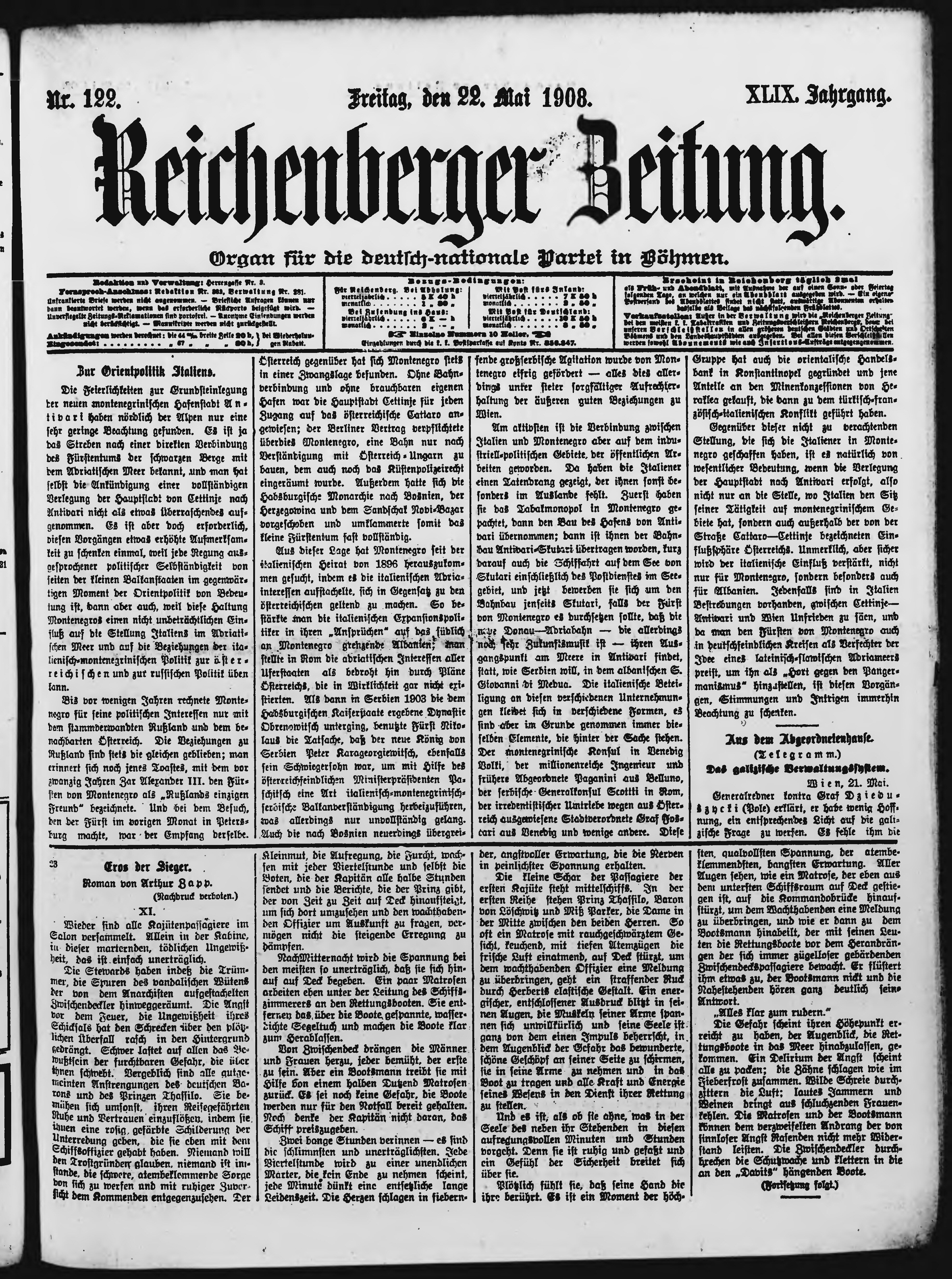 * Datum vydání výtisku: 22.5.1908 Číslo výtisku: 122