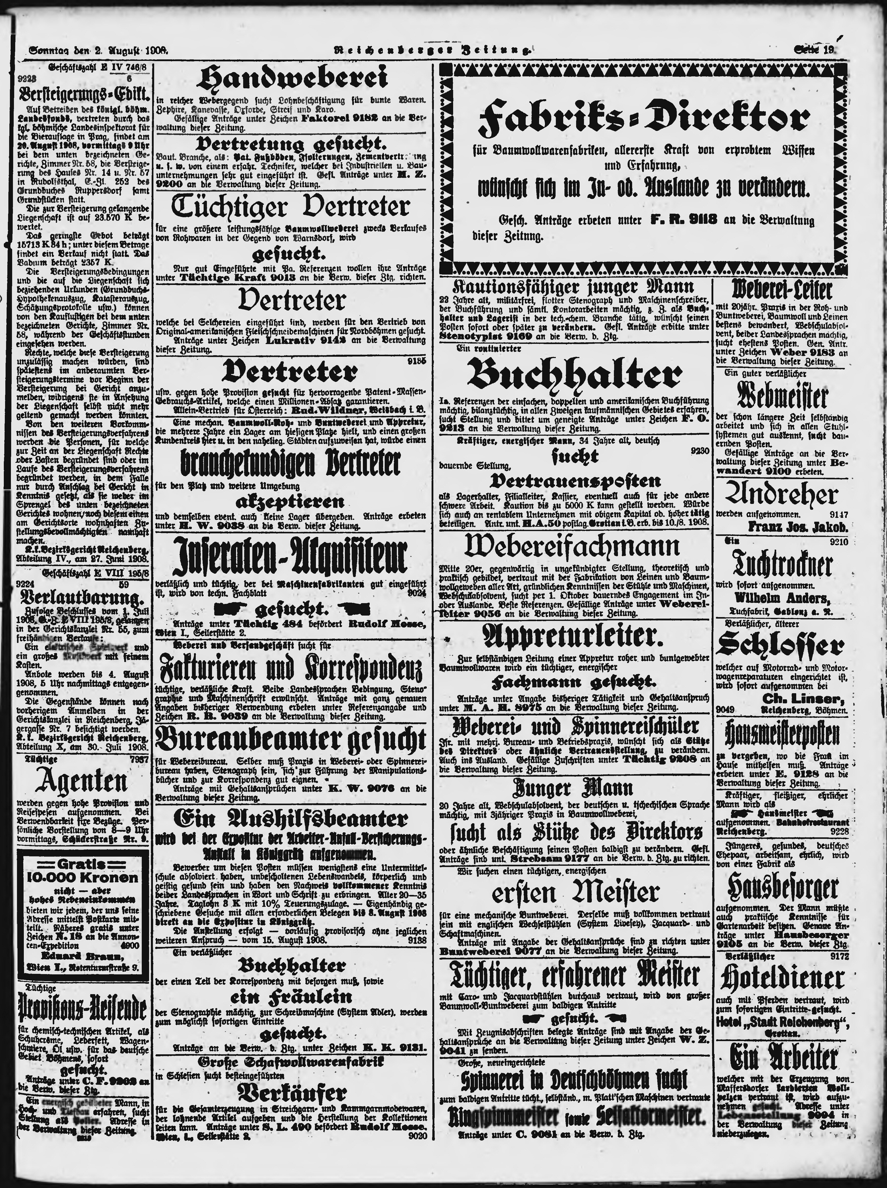 * Datum vydání výtisku: 2.8.1908 Číslo výtisku: 183