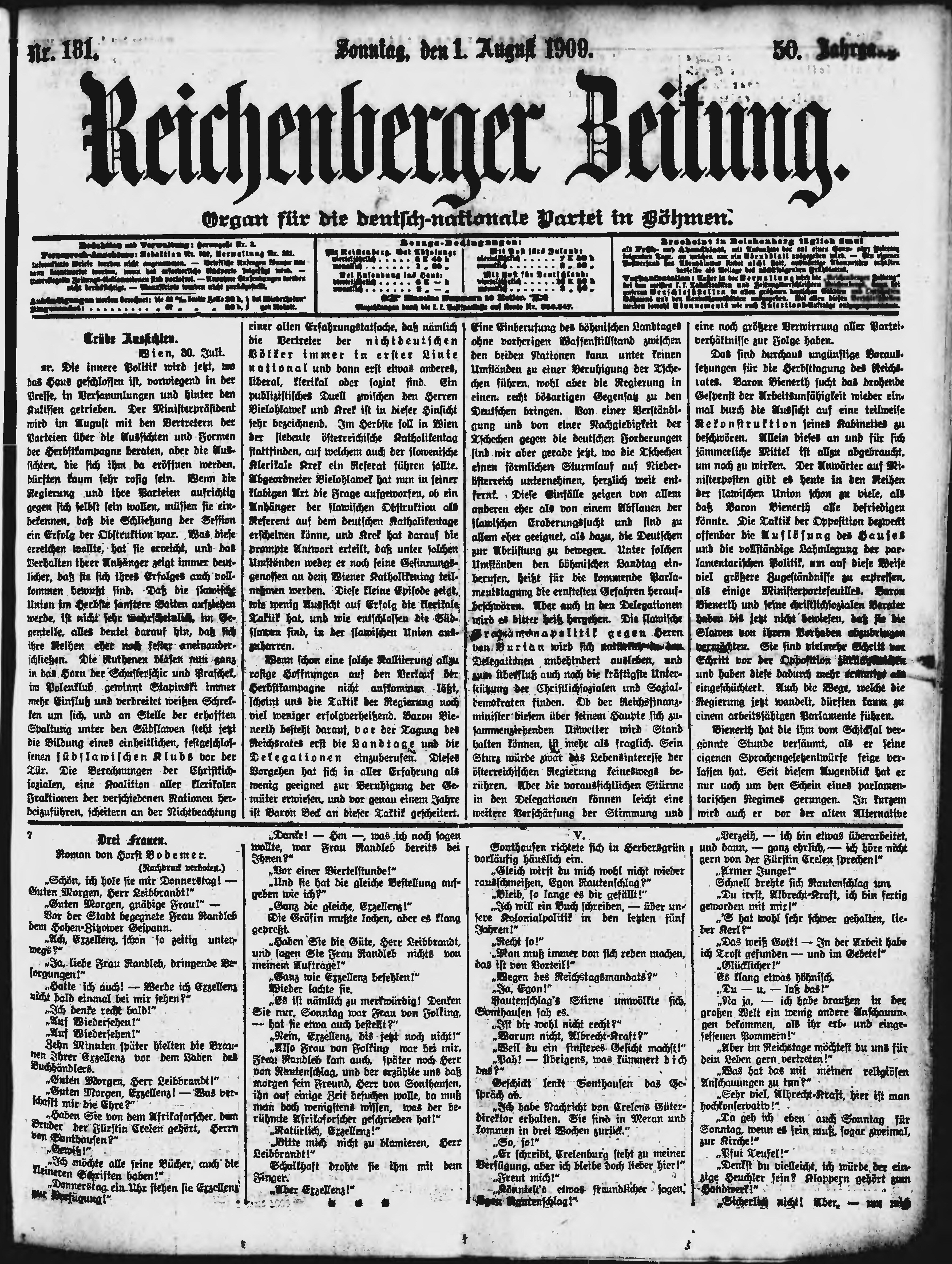 * Datum vydání výtisku: 1.8.1909 Číslo výtisku: 181