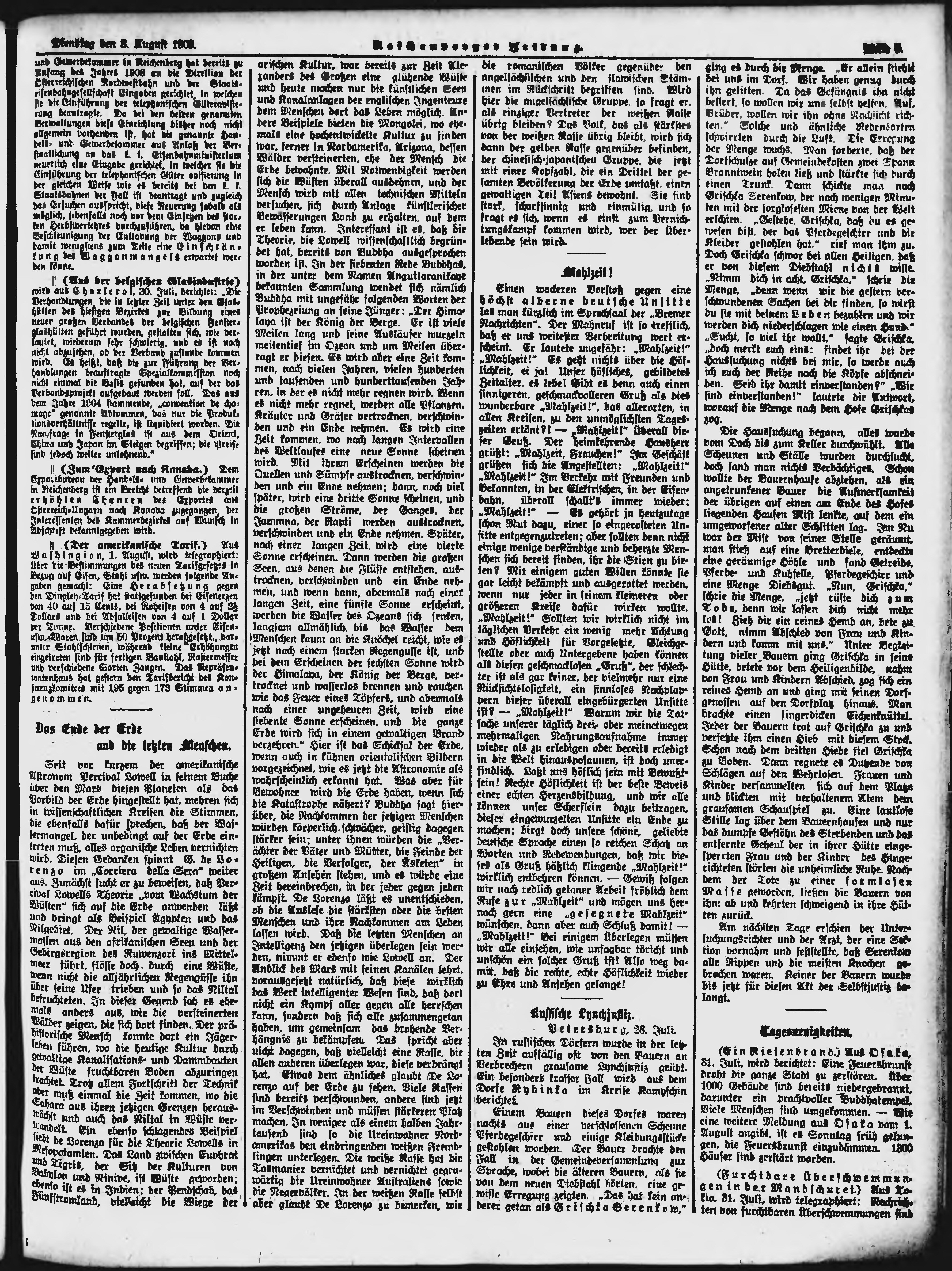 * Datum vydání výtisku: 3.8.1909 Číslo výtisku: 182