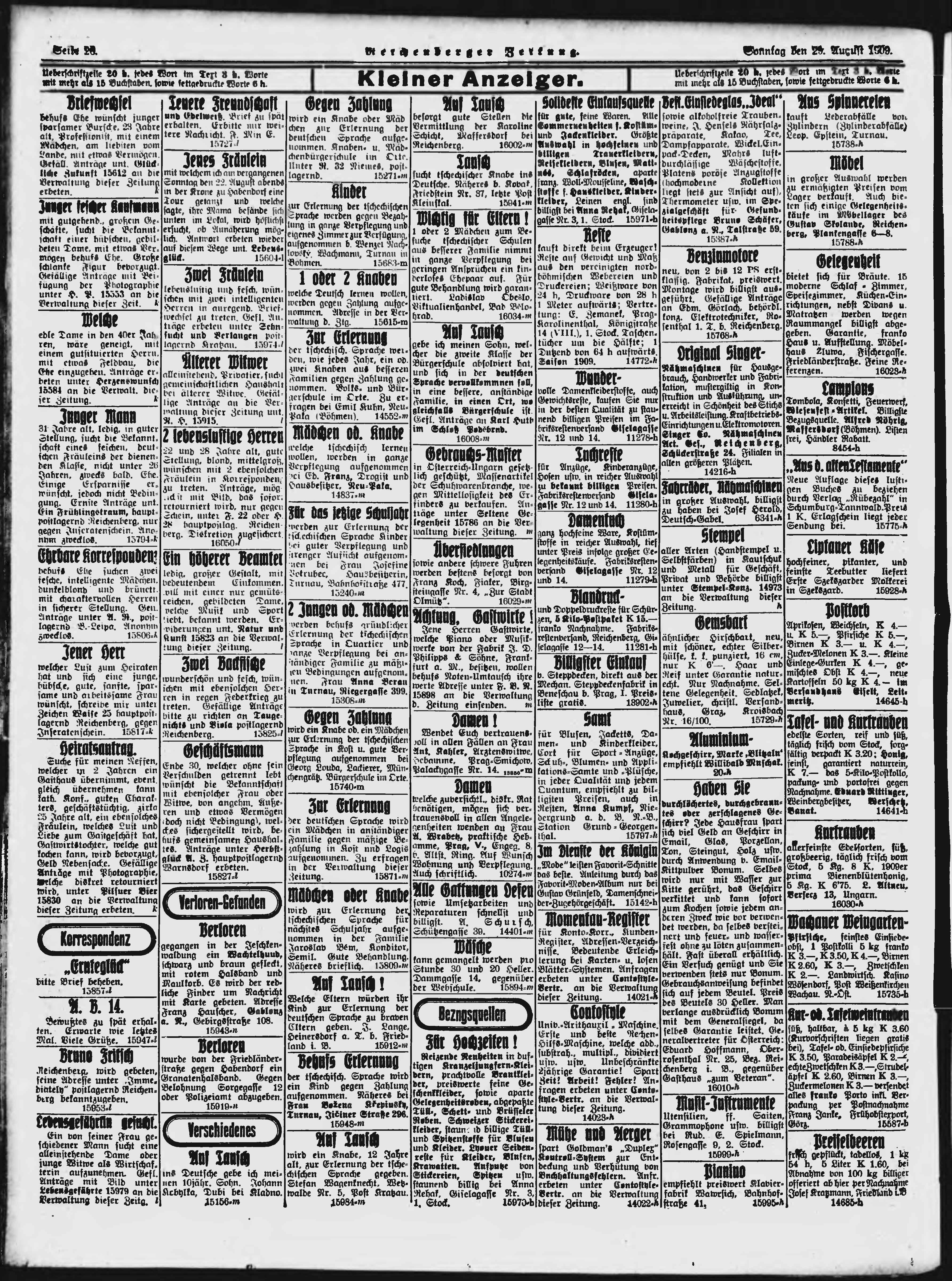 * Datum vydání výtisku: 29.8.1909 Číslo výtisku: 205