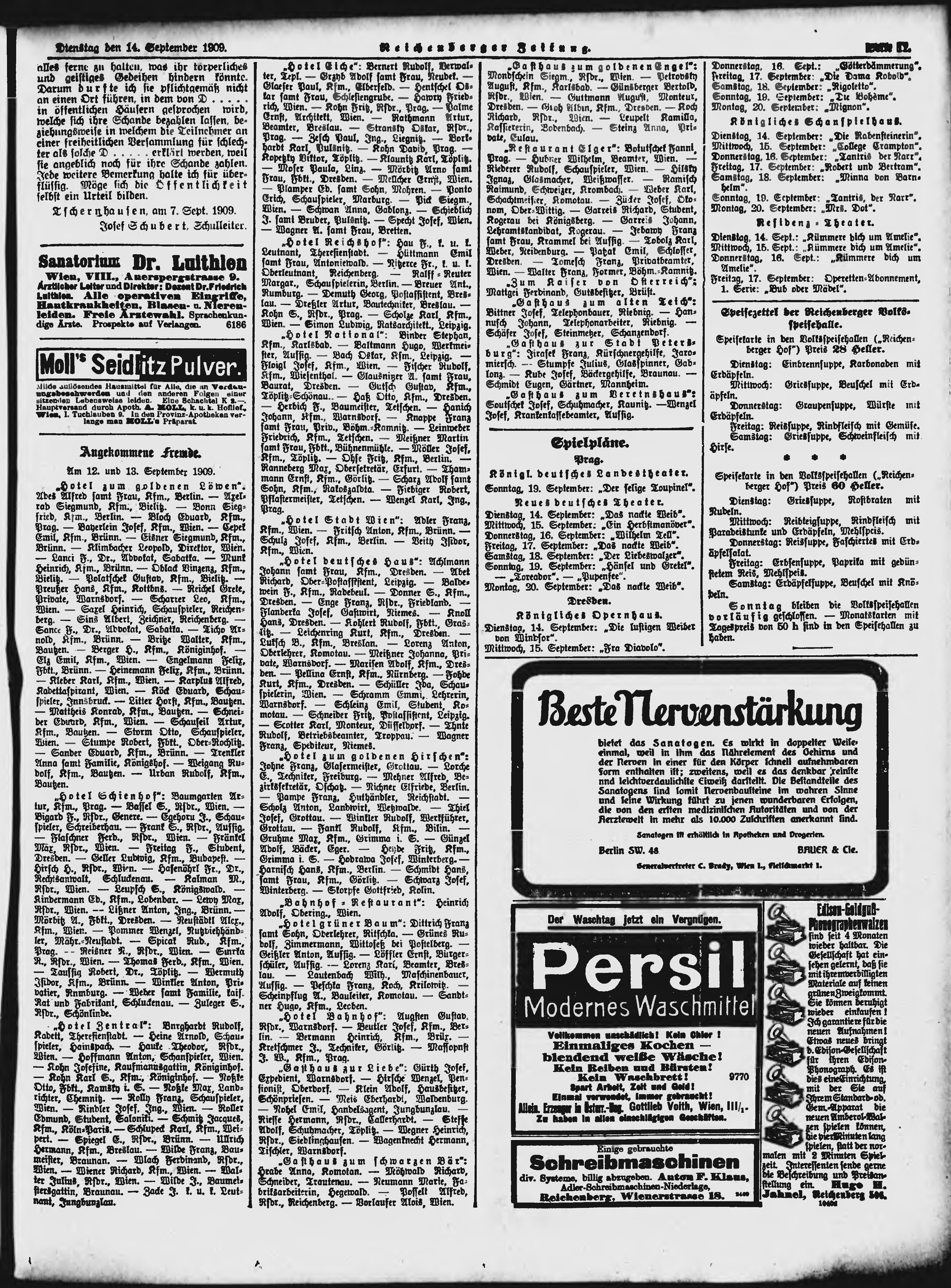* Datum vydání výtisku: 14.9.1909 Číslo výtisku: 218