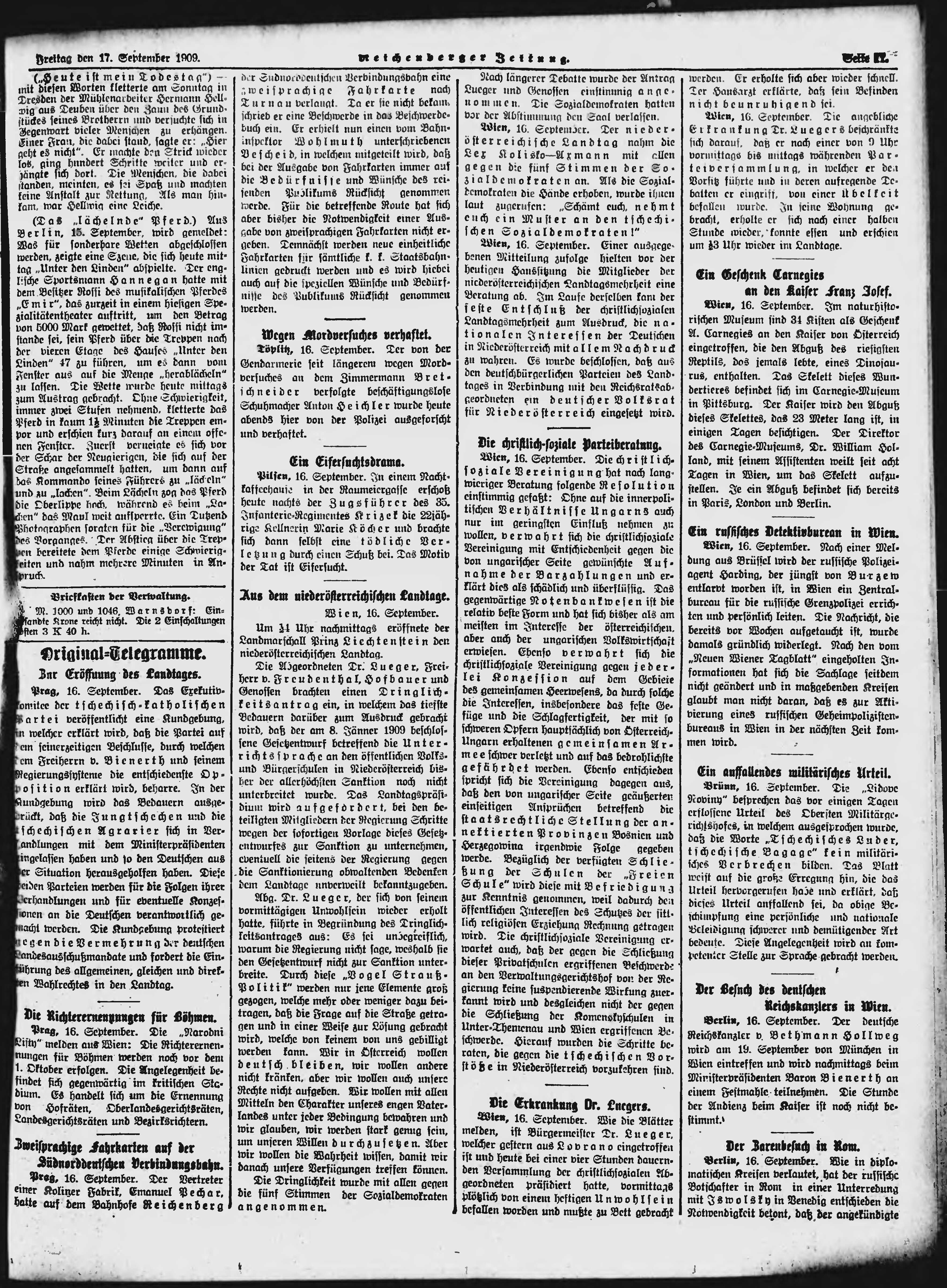 * Datum vydání výtisku: 17.9.1909 Číslo výtisku: 221