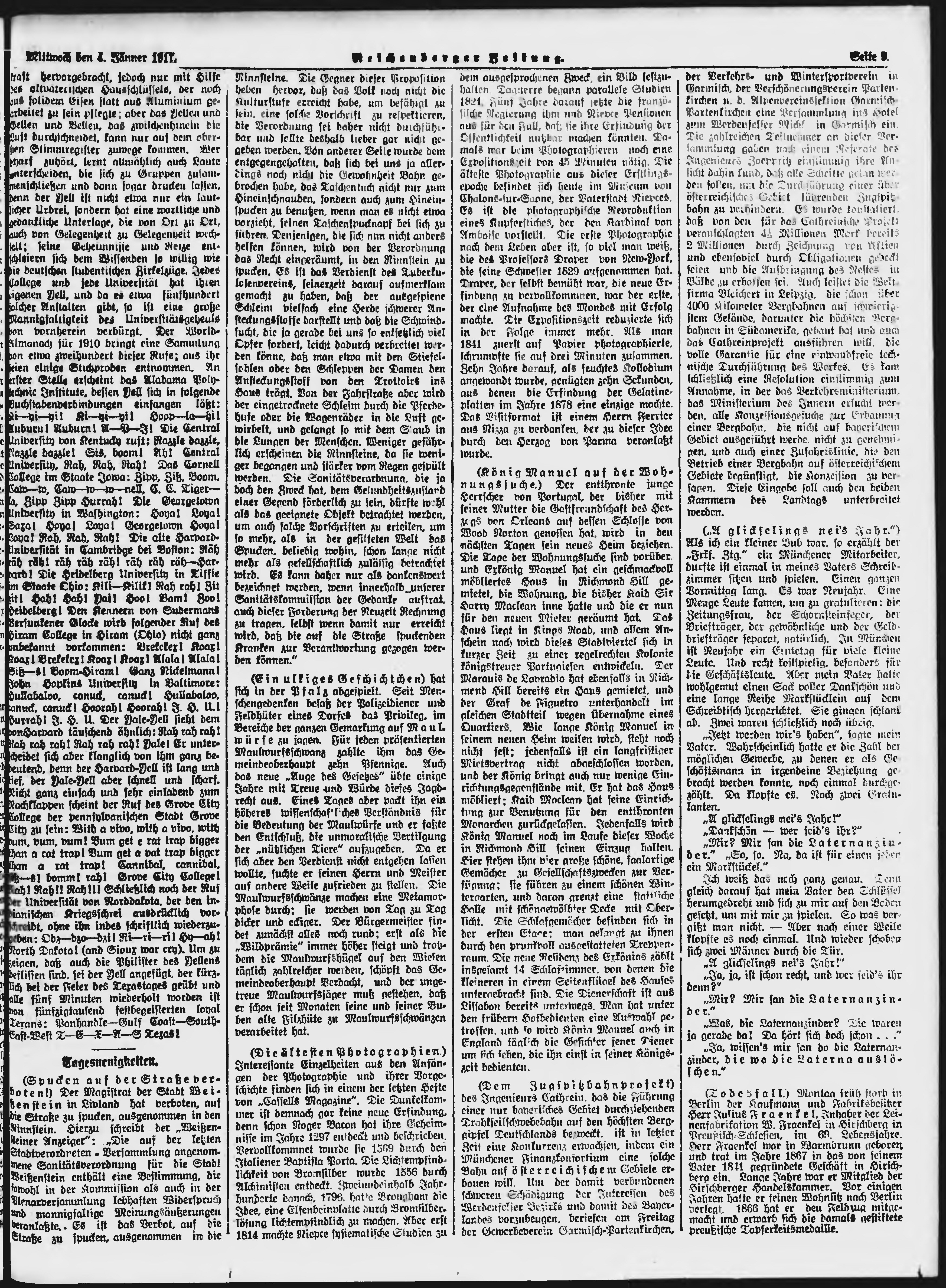 * Datum vydání výtisku: 4.1.1911 Číslo výtisku: 3 Poznámky k výtisku: ranní vydání;