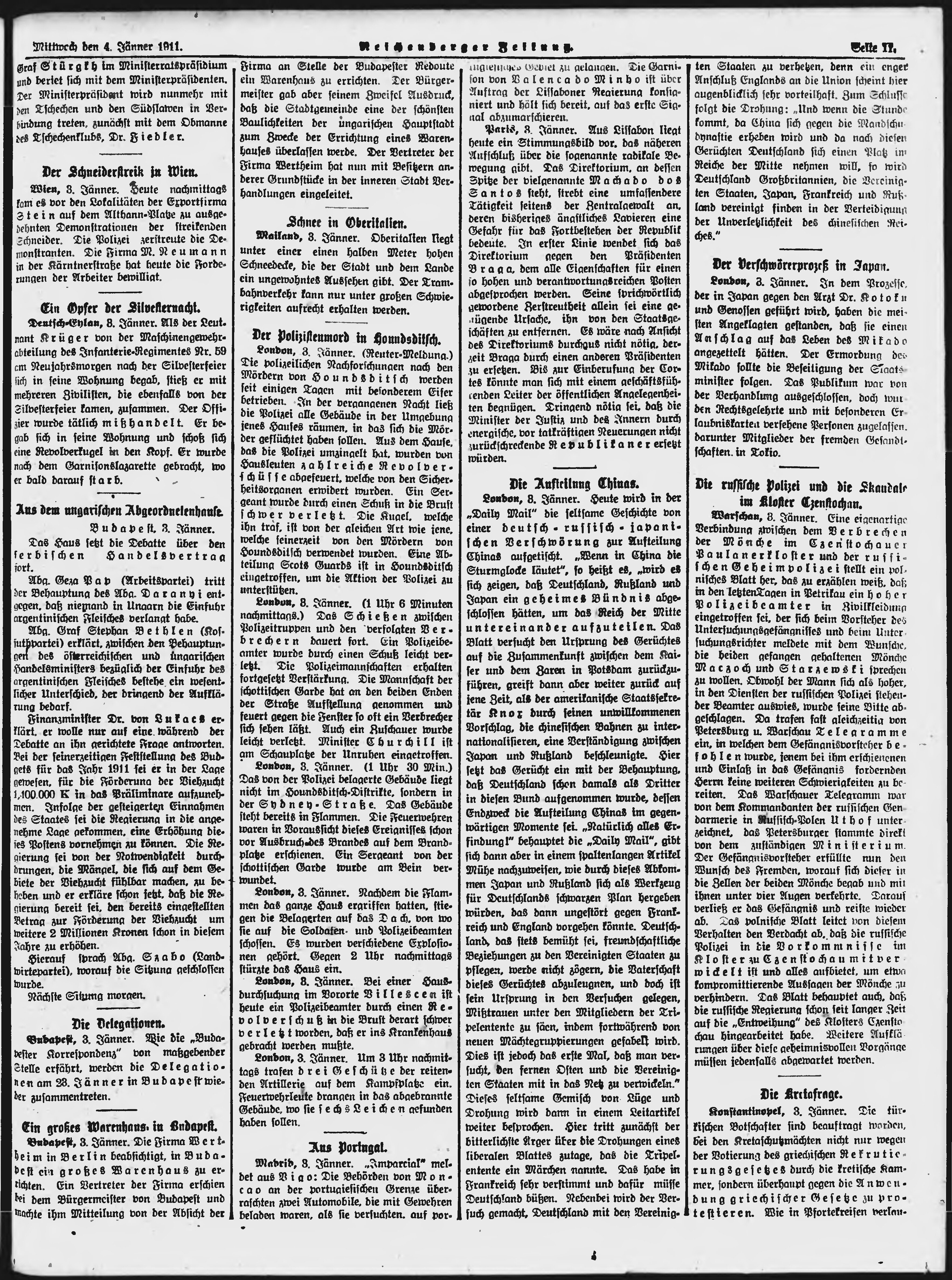 * Datum vydání výtisku: 4.1.1911 Číslo výtisku: 3 Poznámky k výtisku: ranní vydání;