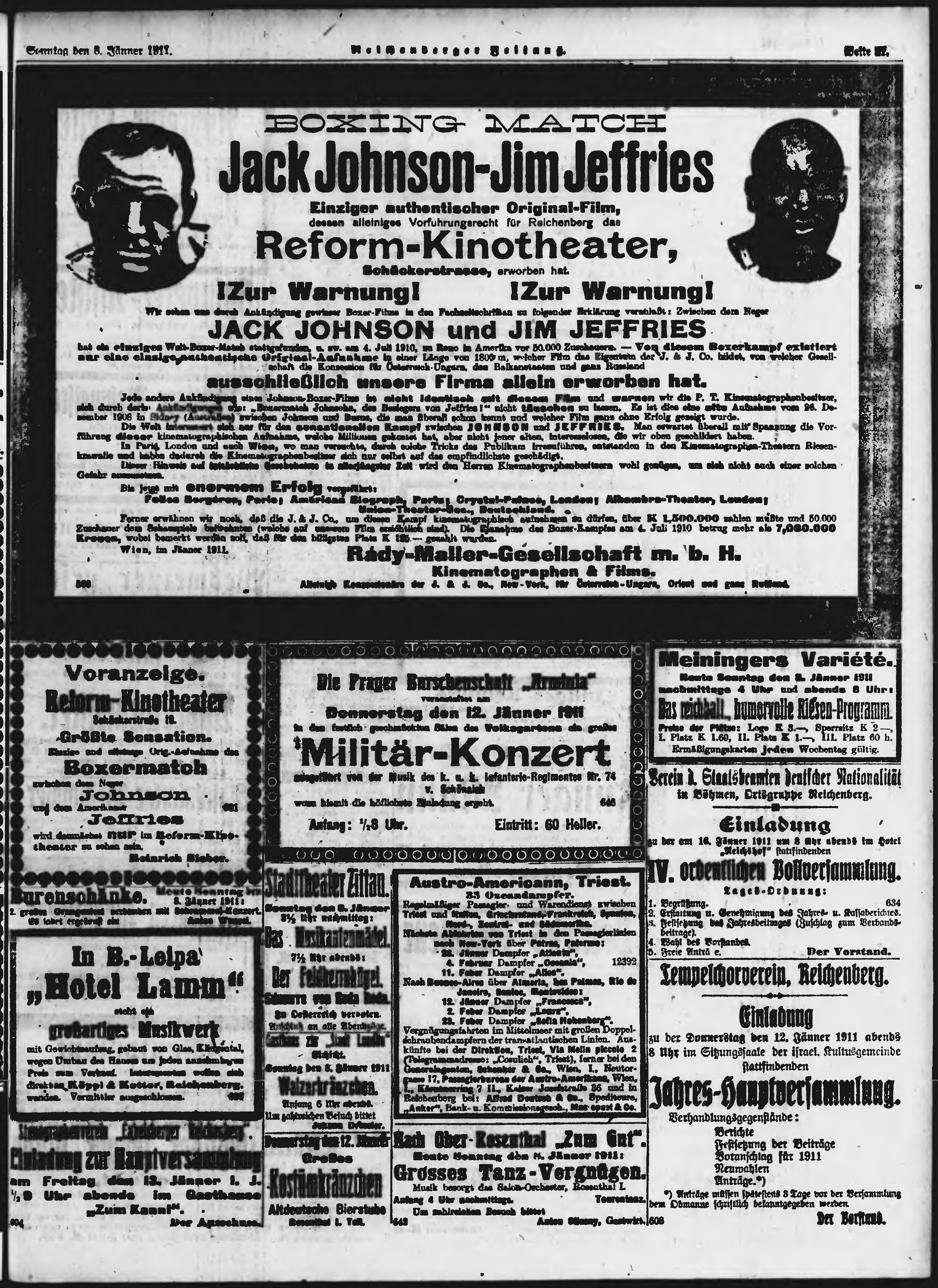 * Datum vydání výtisku: 8.1.1911 Číslo výtisku: 7 Poznámky k výtisku: ranní vydání;