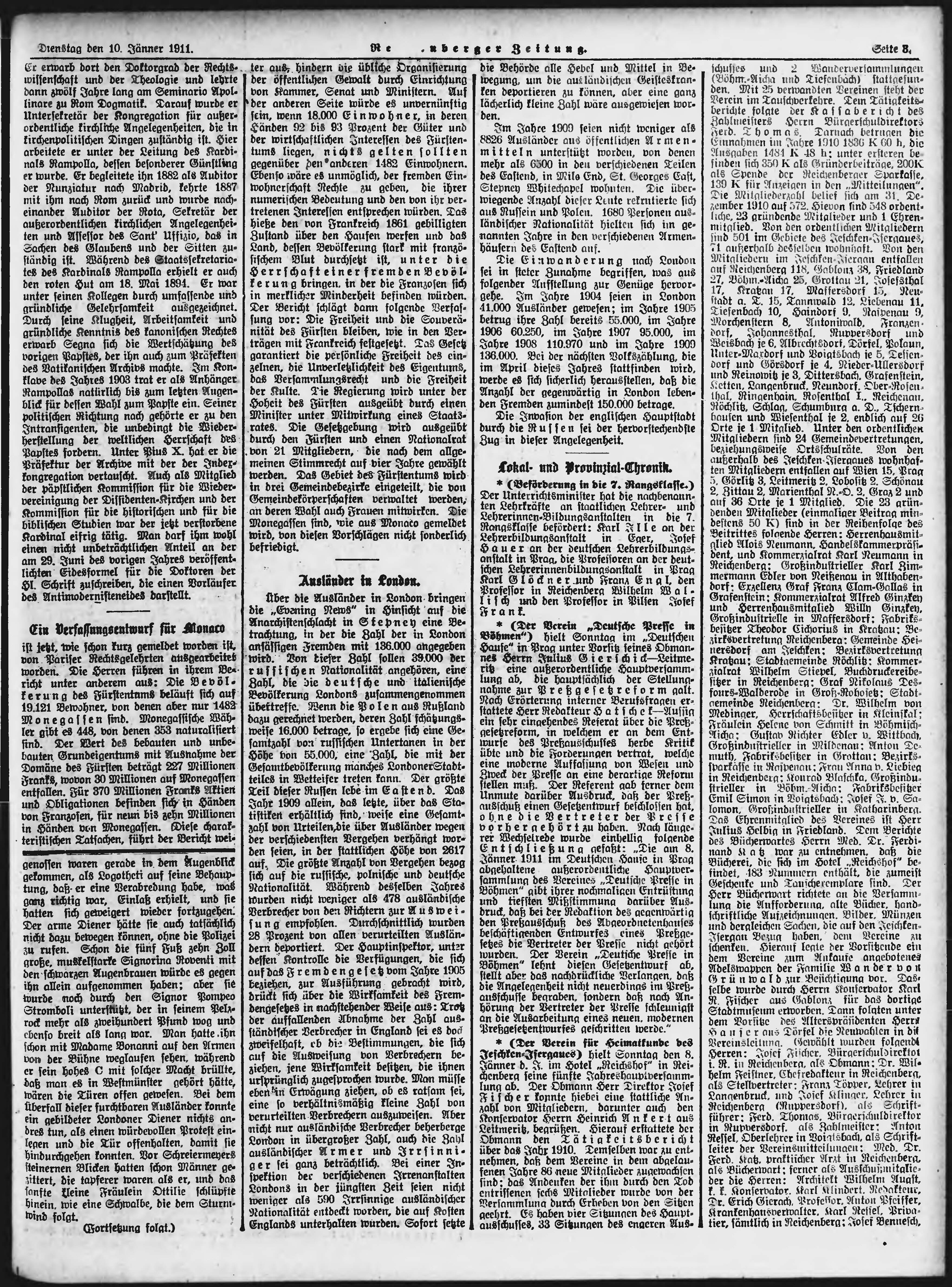 * Datum vydání výtisku: 10.1.1911 Číslo výtisku: 8 Poznámky k výtisku: ranní vydání;