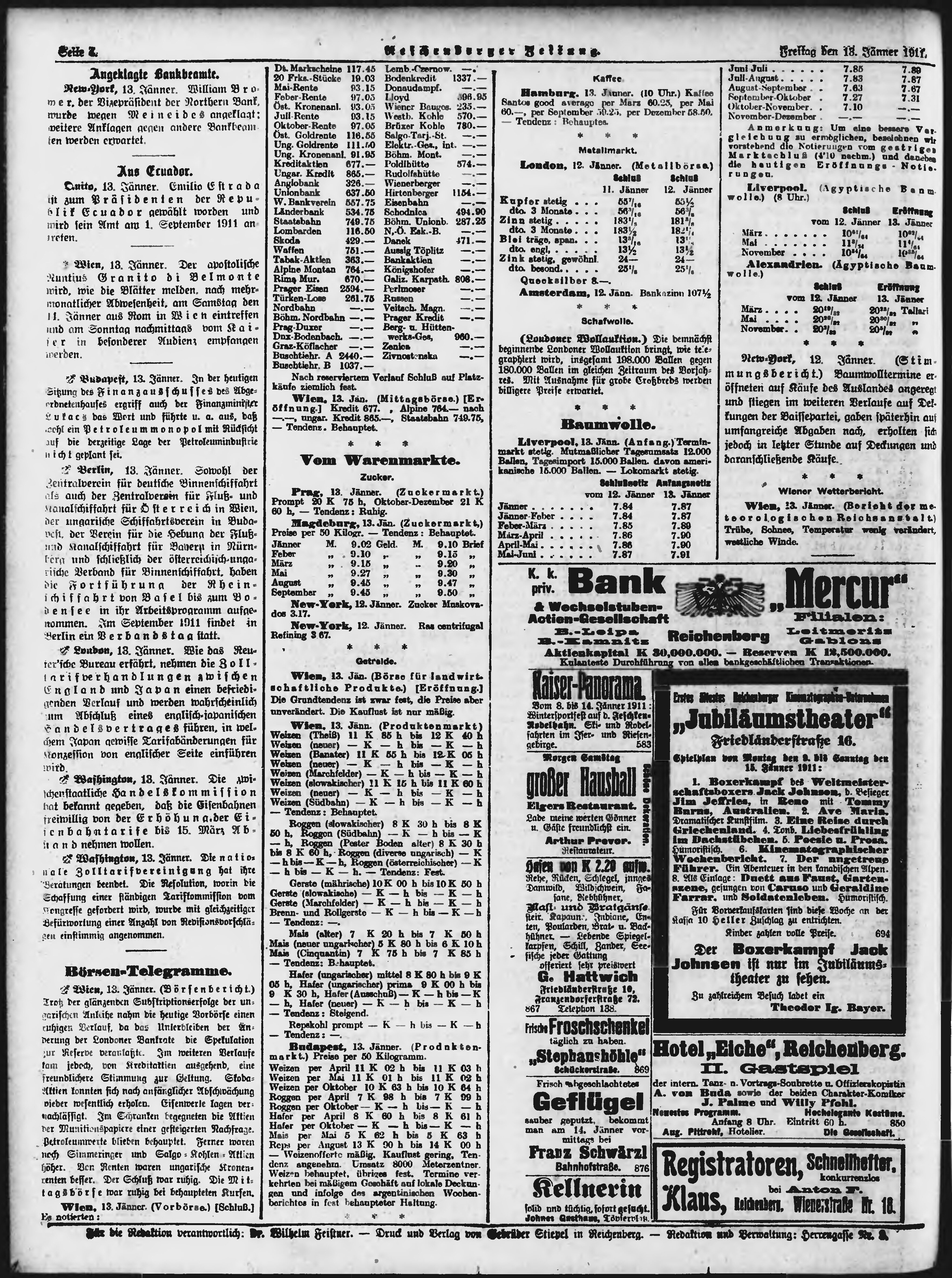 * Datum vydání výtisku: 13.1.1911 Číslo výtisku: 12 Typ výtisku: příloha Poznámky k výtisku: večerní vydání;