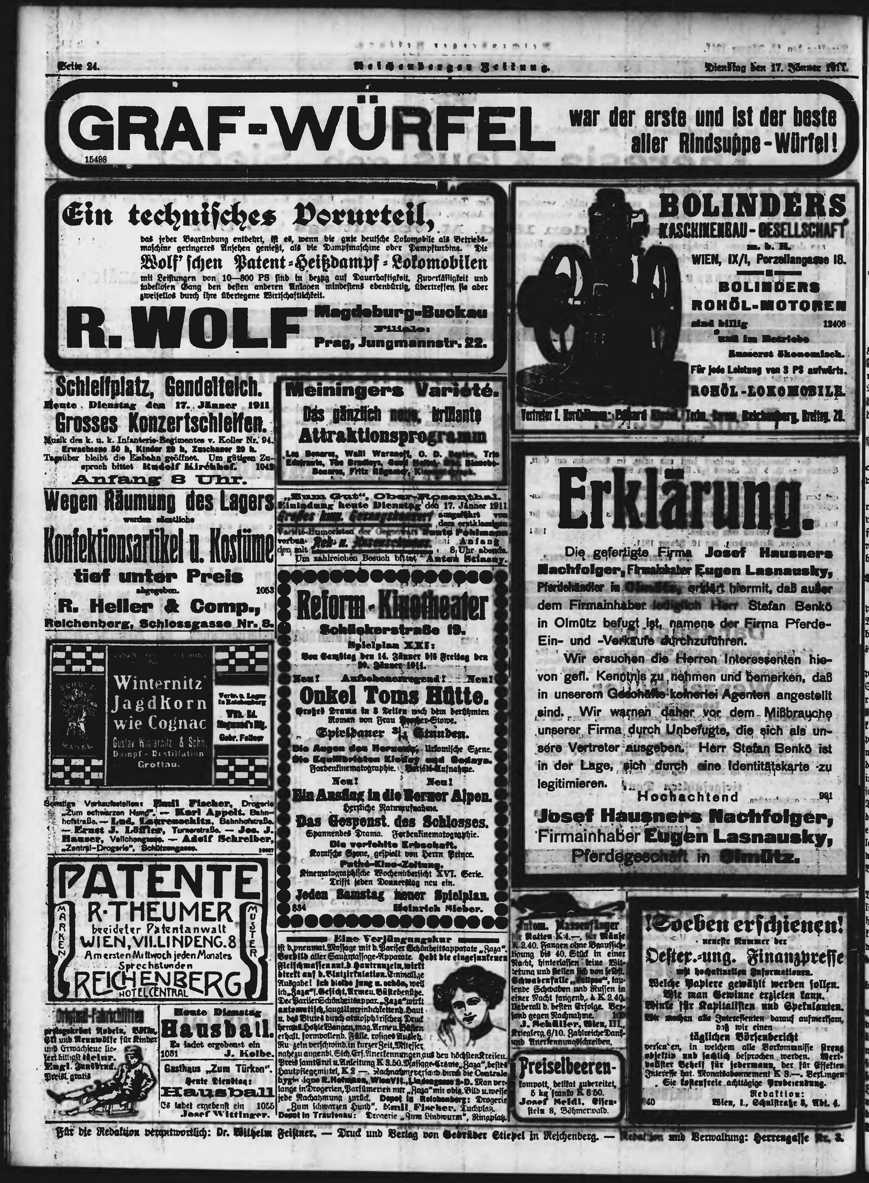 * Datum vydání výtisku: 17.1.1911 Číslo výtisku: 14 Poznámky k výtisku: ranní vydání;