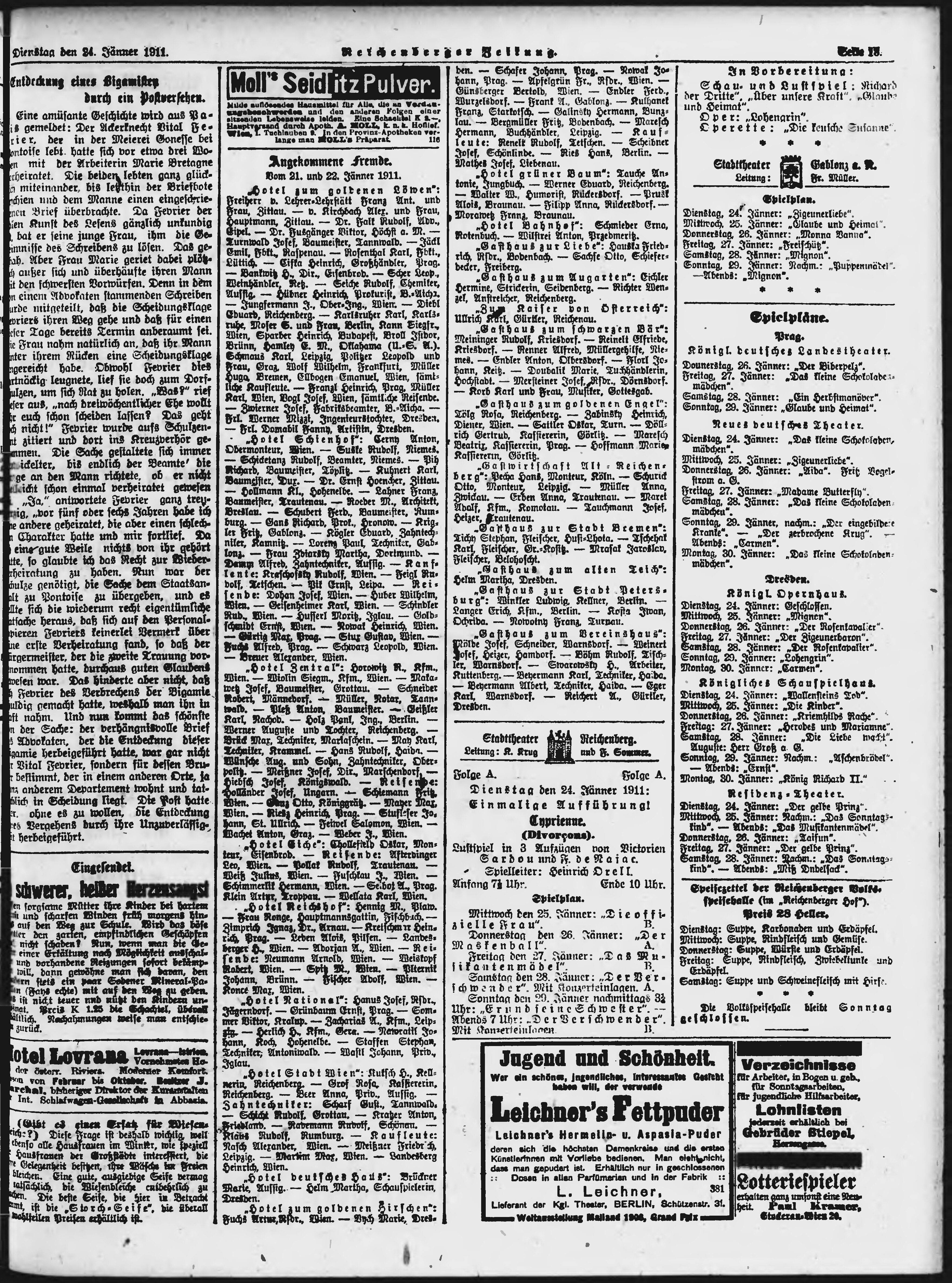 * Datum vydání výtisku: 24.1.1911 Číslo výtisku: 20 Poznámky k výtisku: ranní vydání;