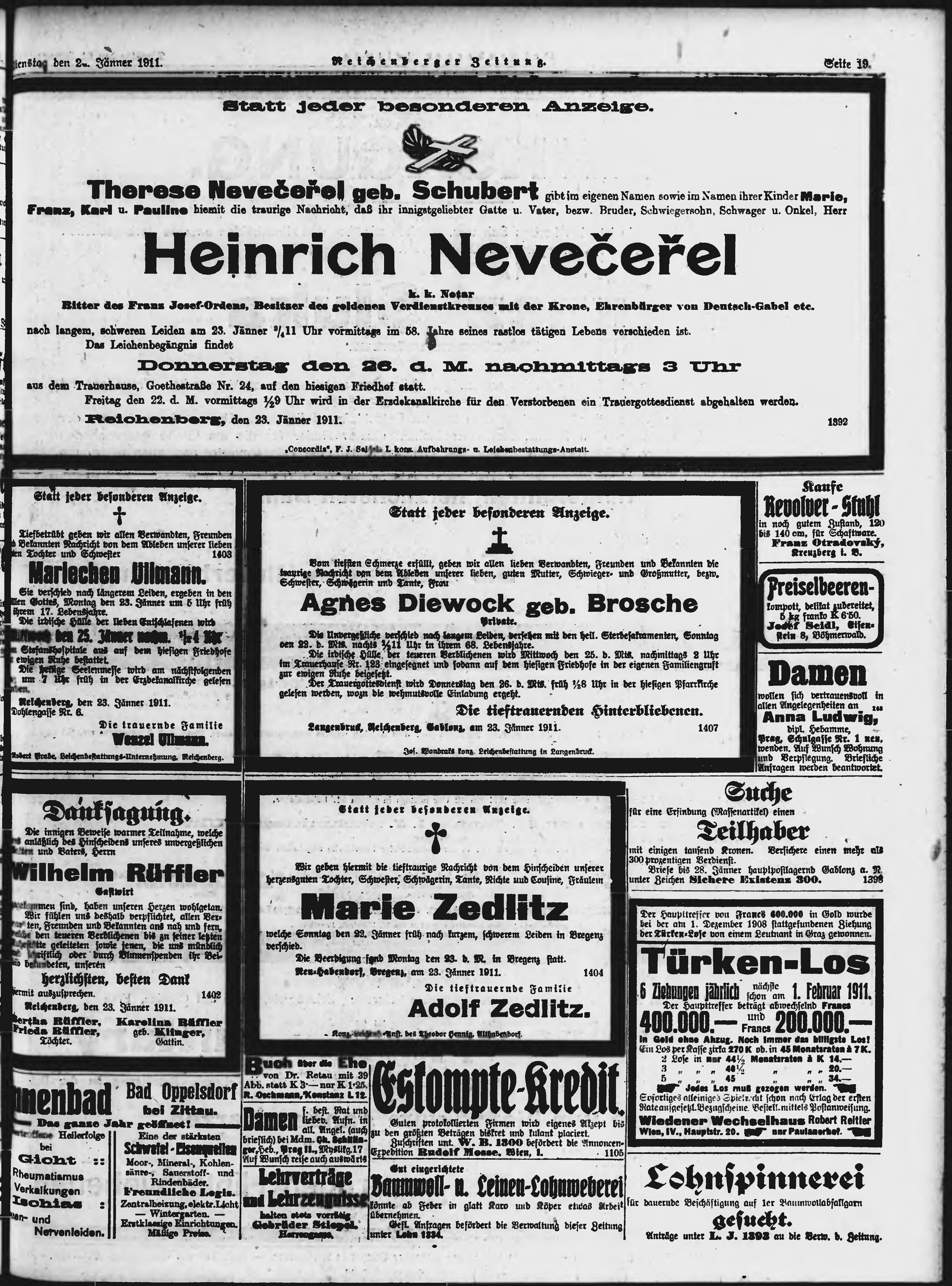 * Datum vydání výtisku: 24.1.1911 Číslo výtisku: 20 Poznámky k výtisku: ranní vydání;