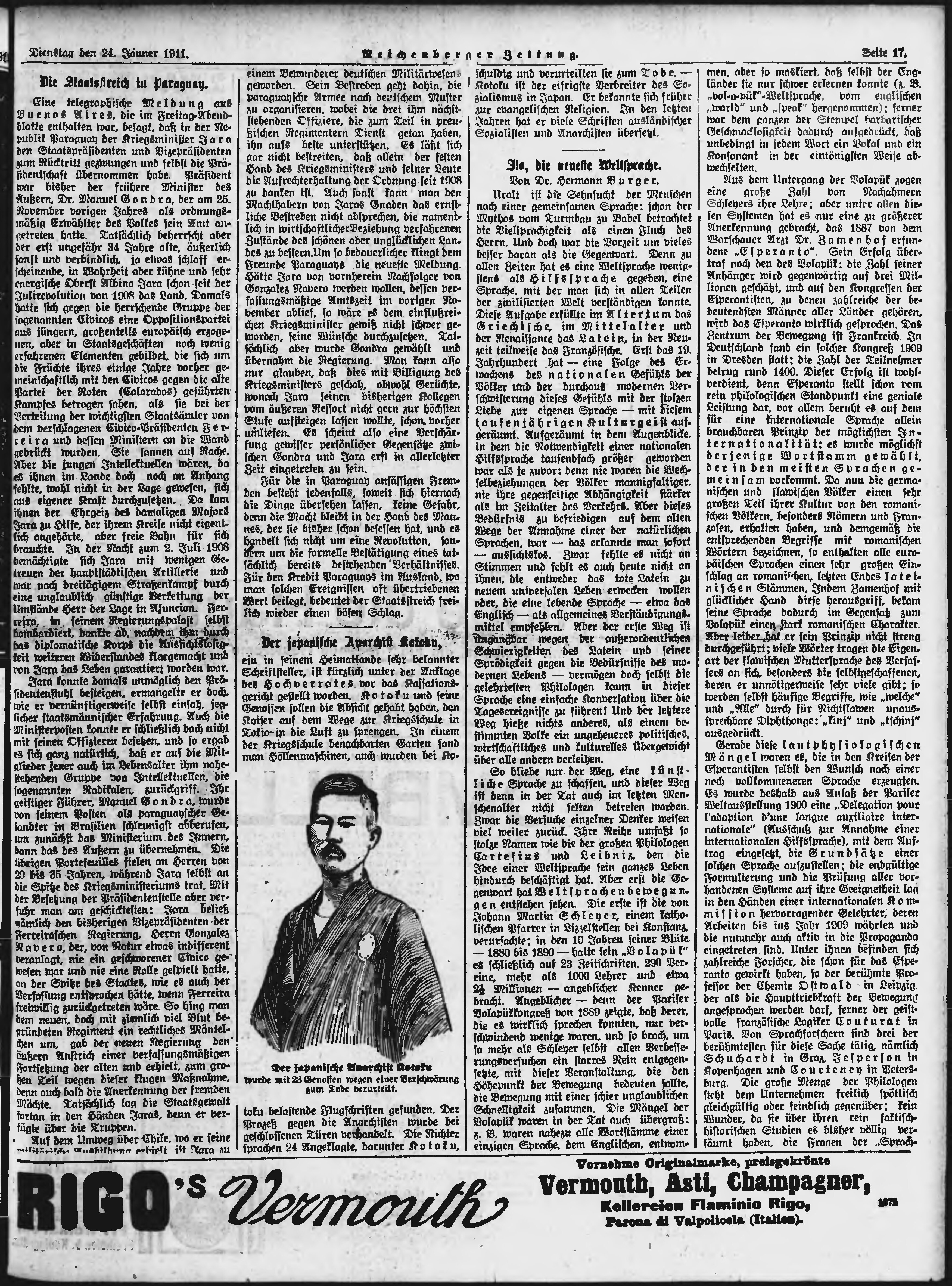 * Datum vydání výtisku: 24.1.1911 Číslo výtisku: 20 Poznámky k výtisku: ranní vydání;