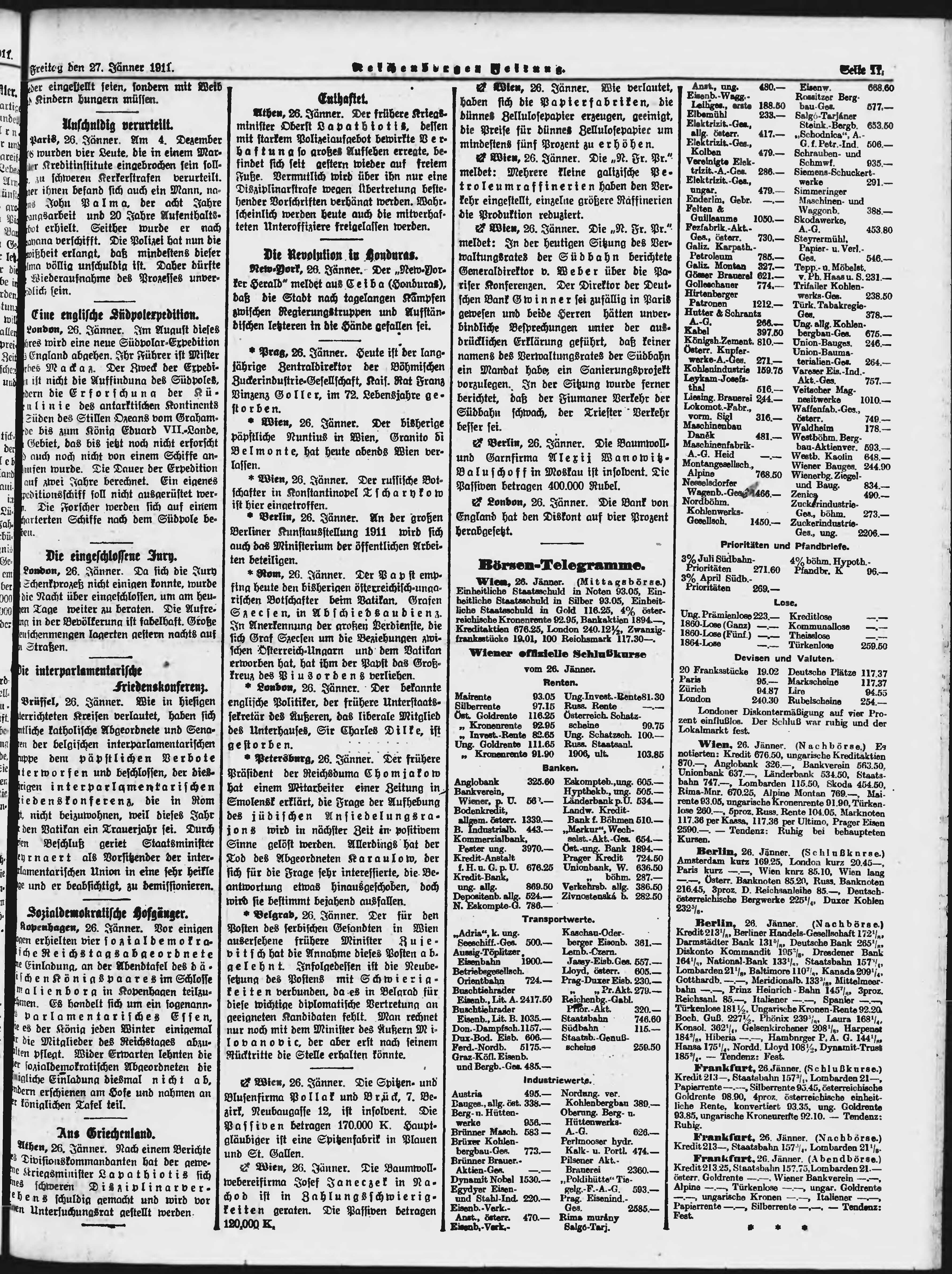 * Datum vydání výtisku: 27.1.1911 Číslo výtisku: 23 Poznámky k výtisku: ranní vydání;