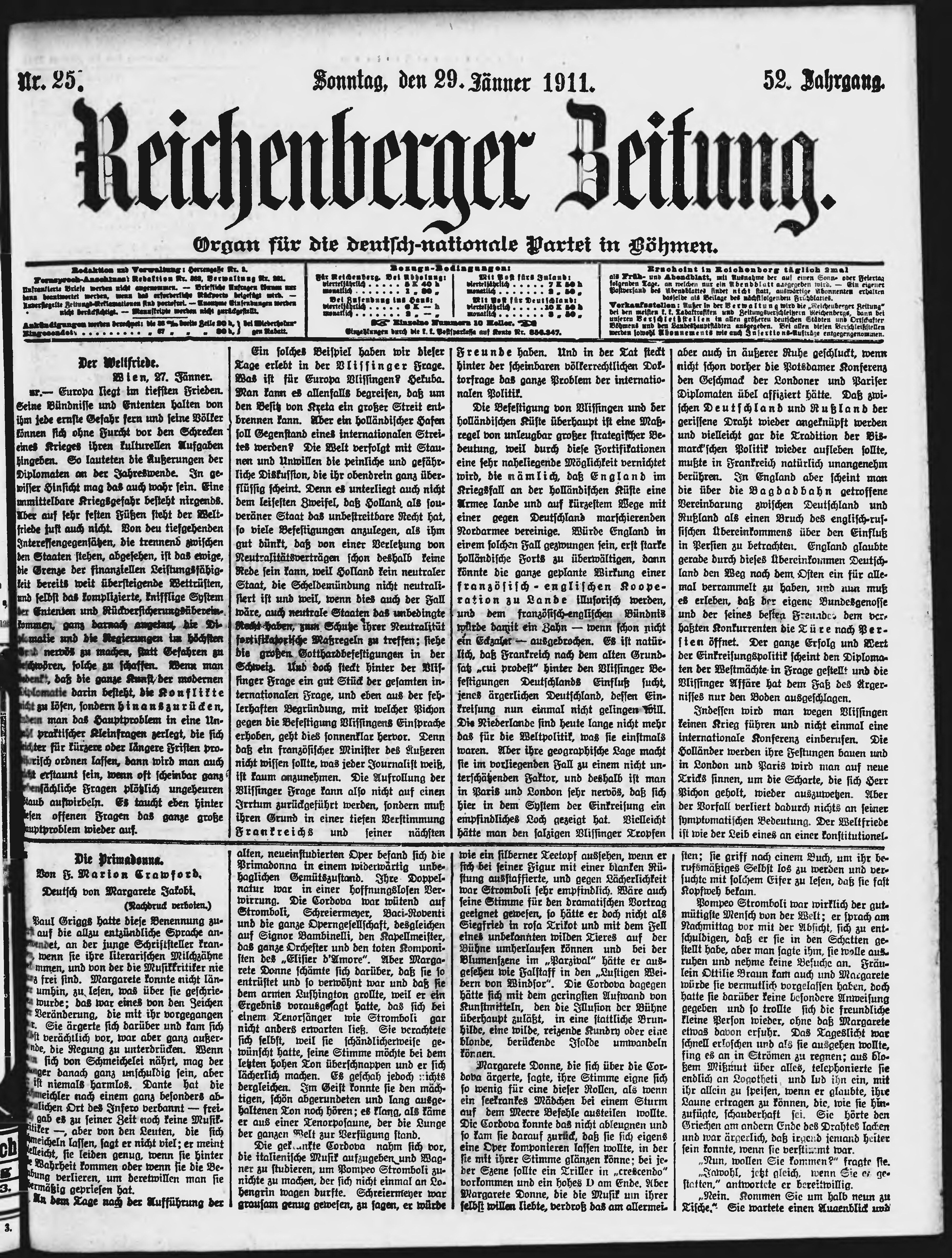 * Datum vydání výtisku: 29.1.1911 Číslo výtisku: 25 Poznámky k výtisku: ranní vydání; nekonzistence číslování stran;