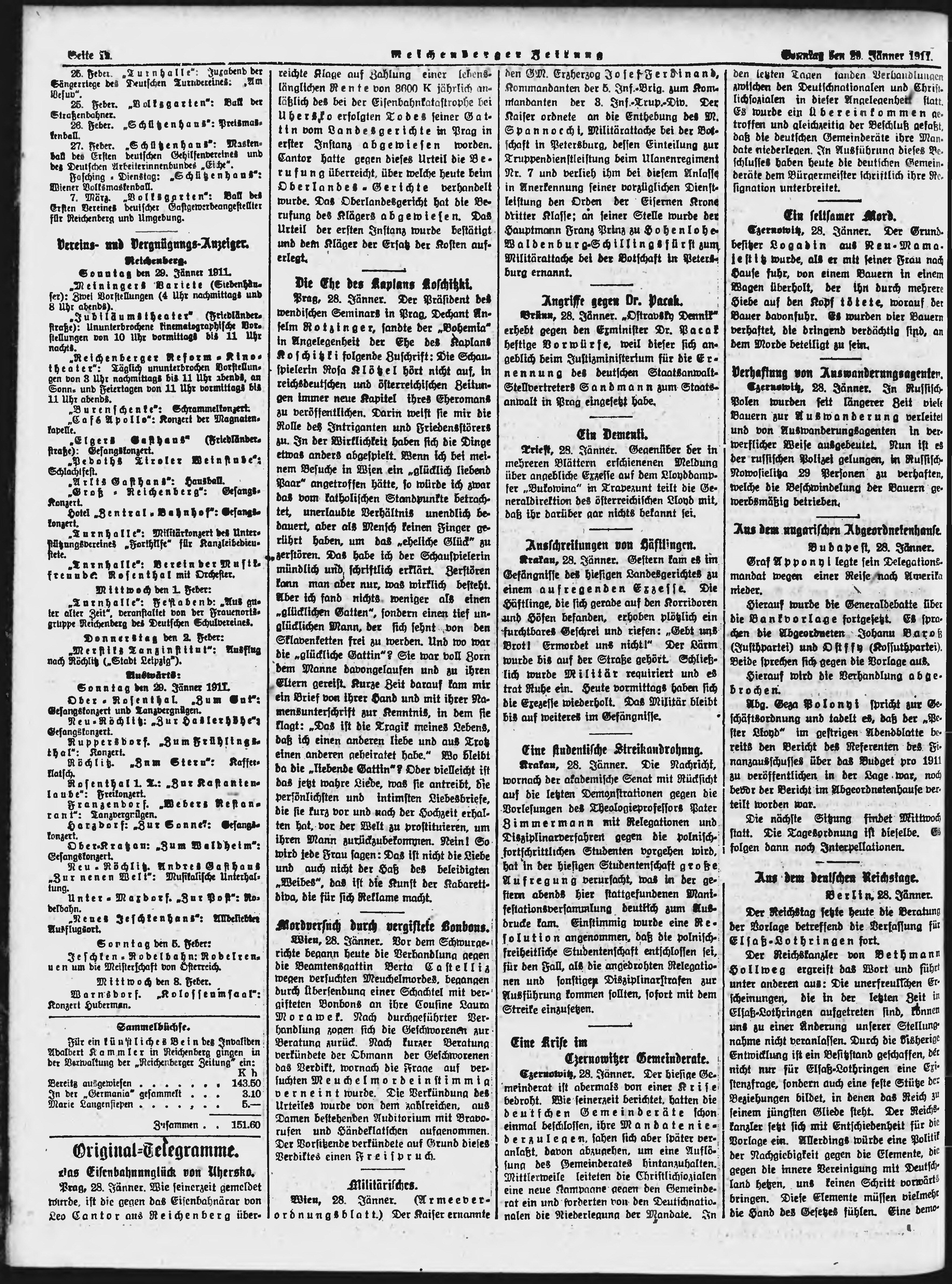 * Datum vydání výtisku: 29.1.1911 Číslo výtisku: 25 Poznámky k výtisku: ranní vydání; nekonzistence číslování stran;