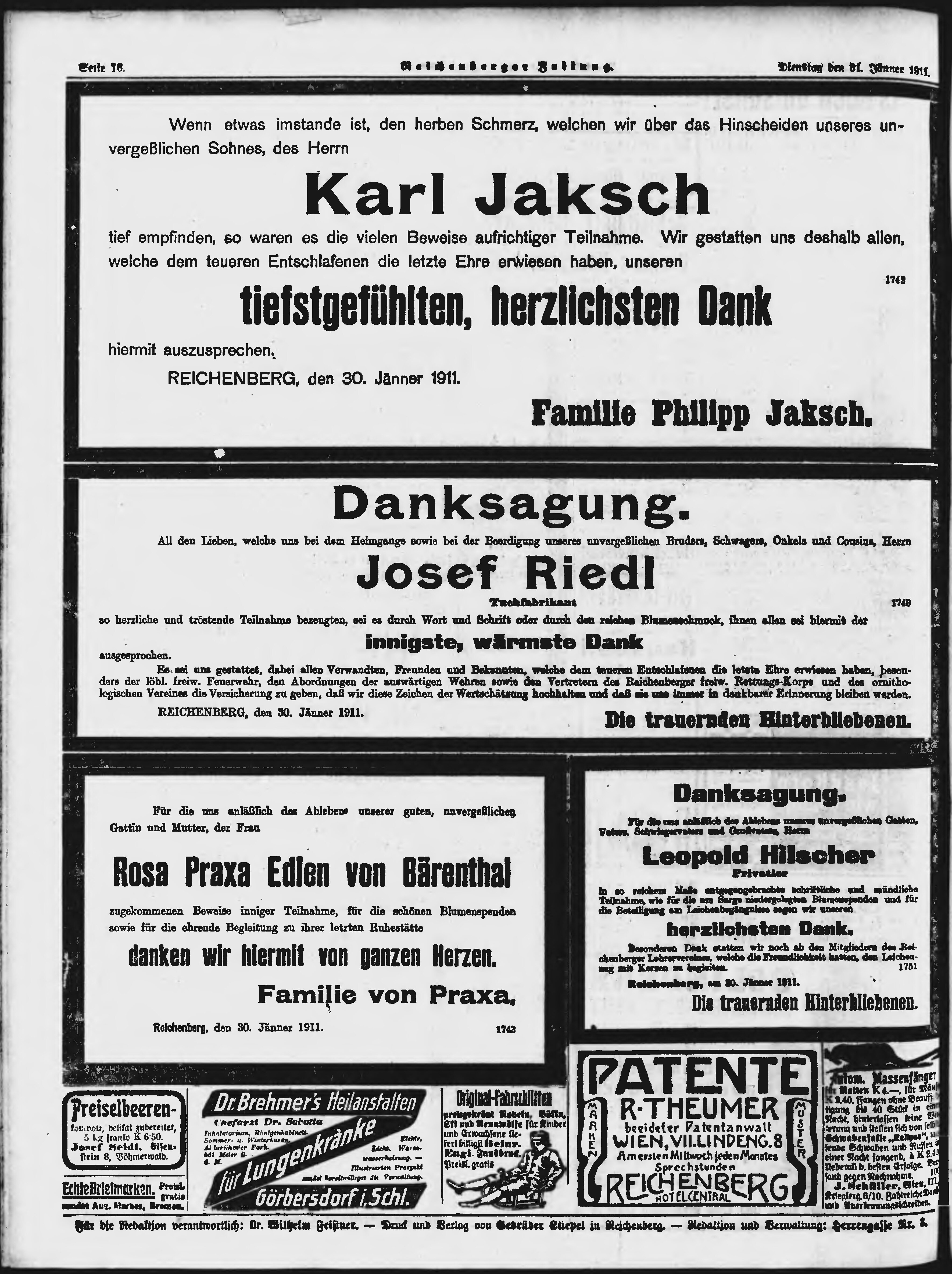 * Datum vydání výtisku: 31.1.1911 Číslo výtisku: 26 Poznámky k výtisku: ranní vydání;