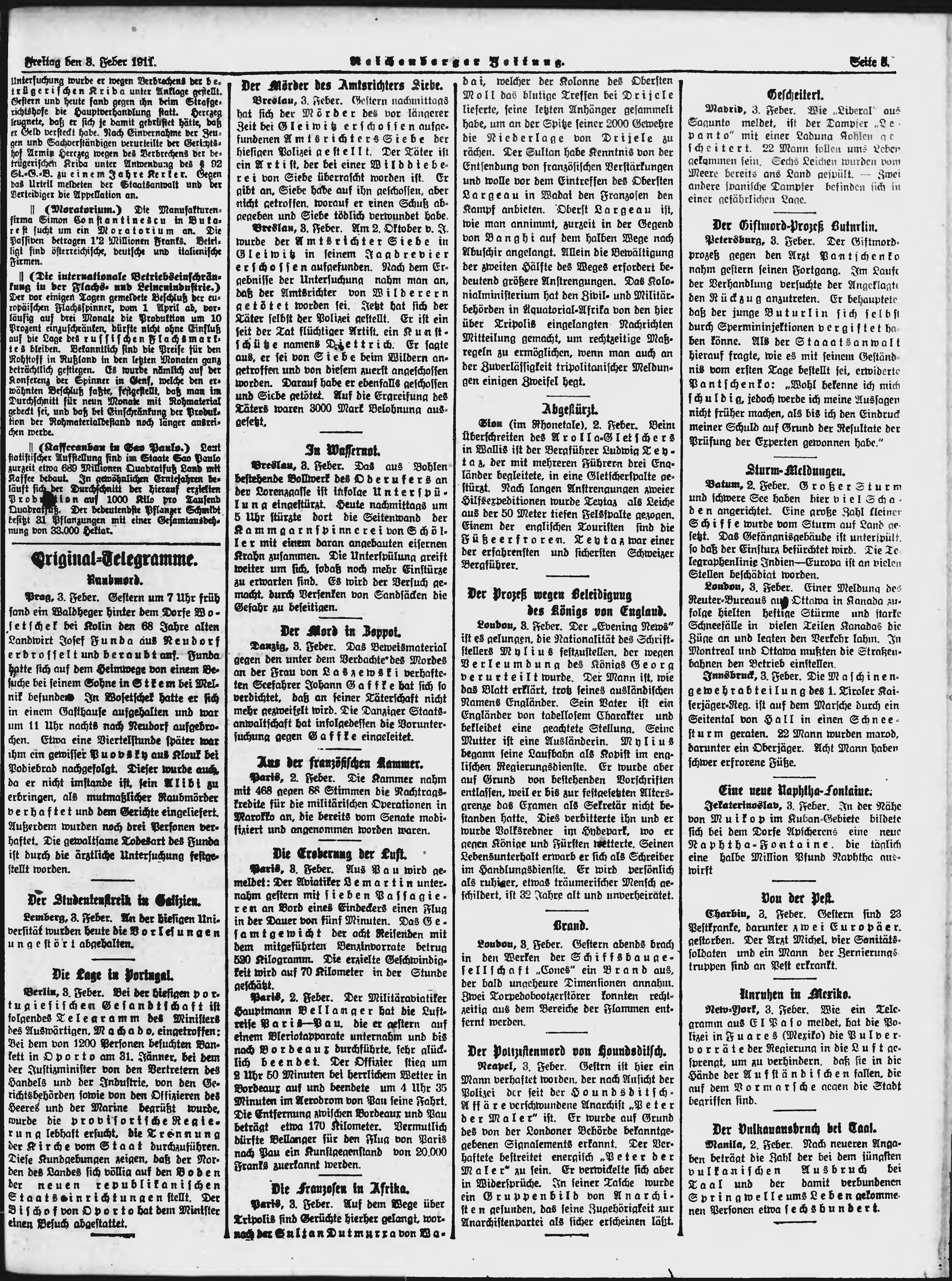 * Datum vydání výtisku: 3.2.1911 Číslo výtisku: 30 Typ výtisku: příloha Poznámky k výtisku: večerní vydání;