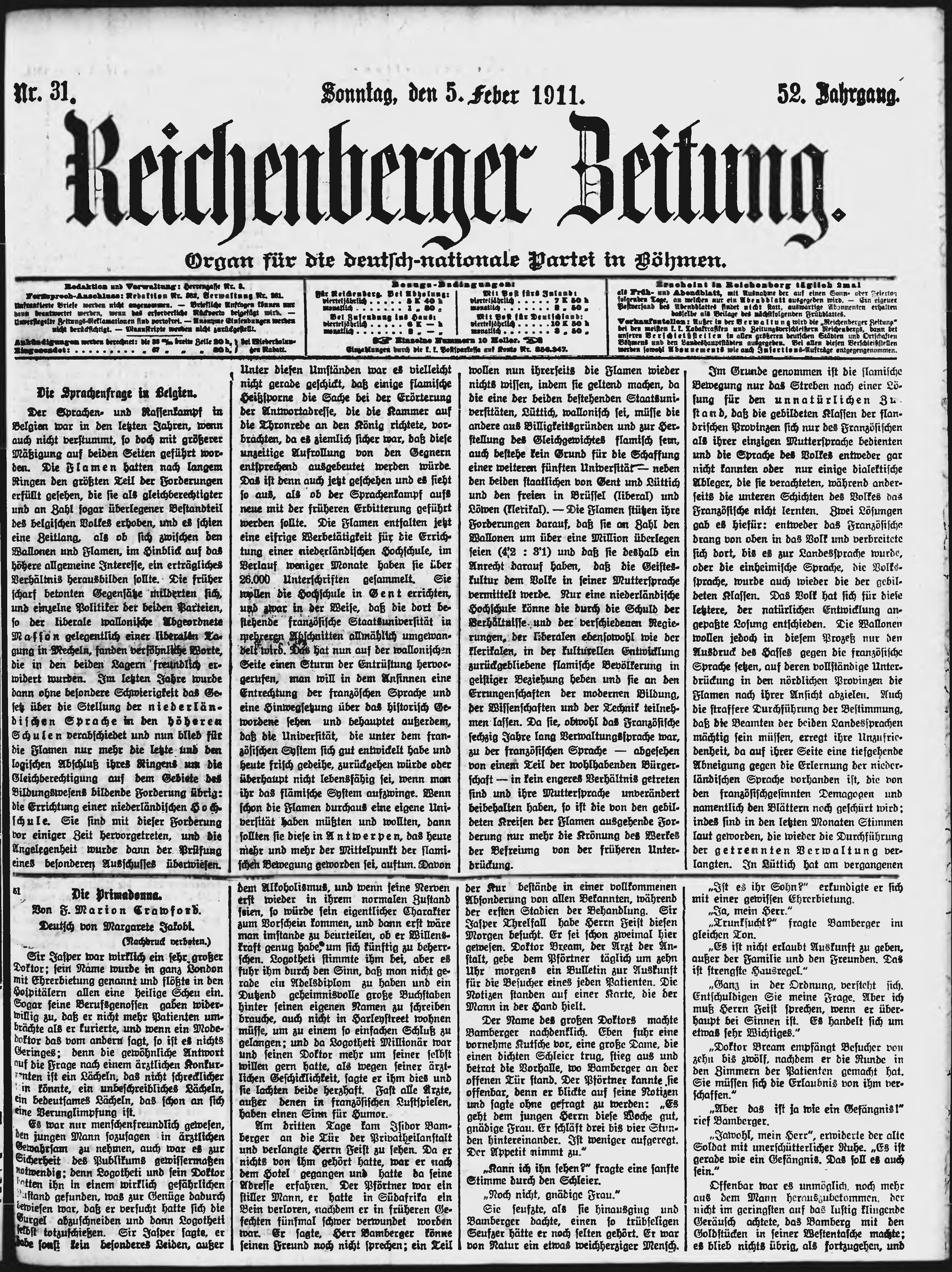 * Datum vydání výtisku: 5.2.1911 Číslo výtisku: 31 Poznámky k výtisku: ranní vydání;