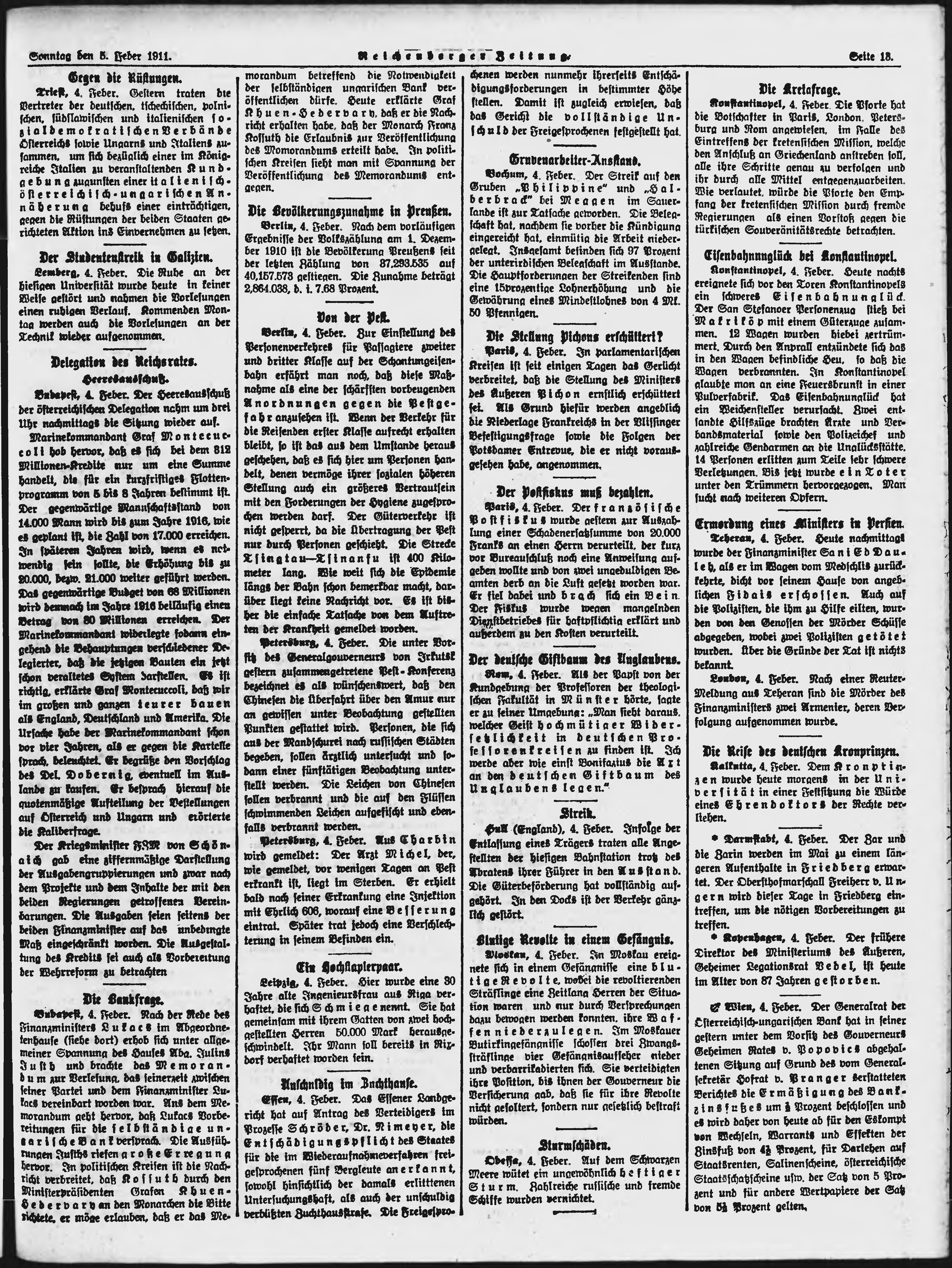 * Datum vydání výtisku: 5.2.1911 Číslo výtisku: 31 Poznámky k výtisku: ranní vydání;