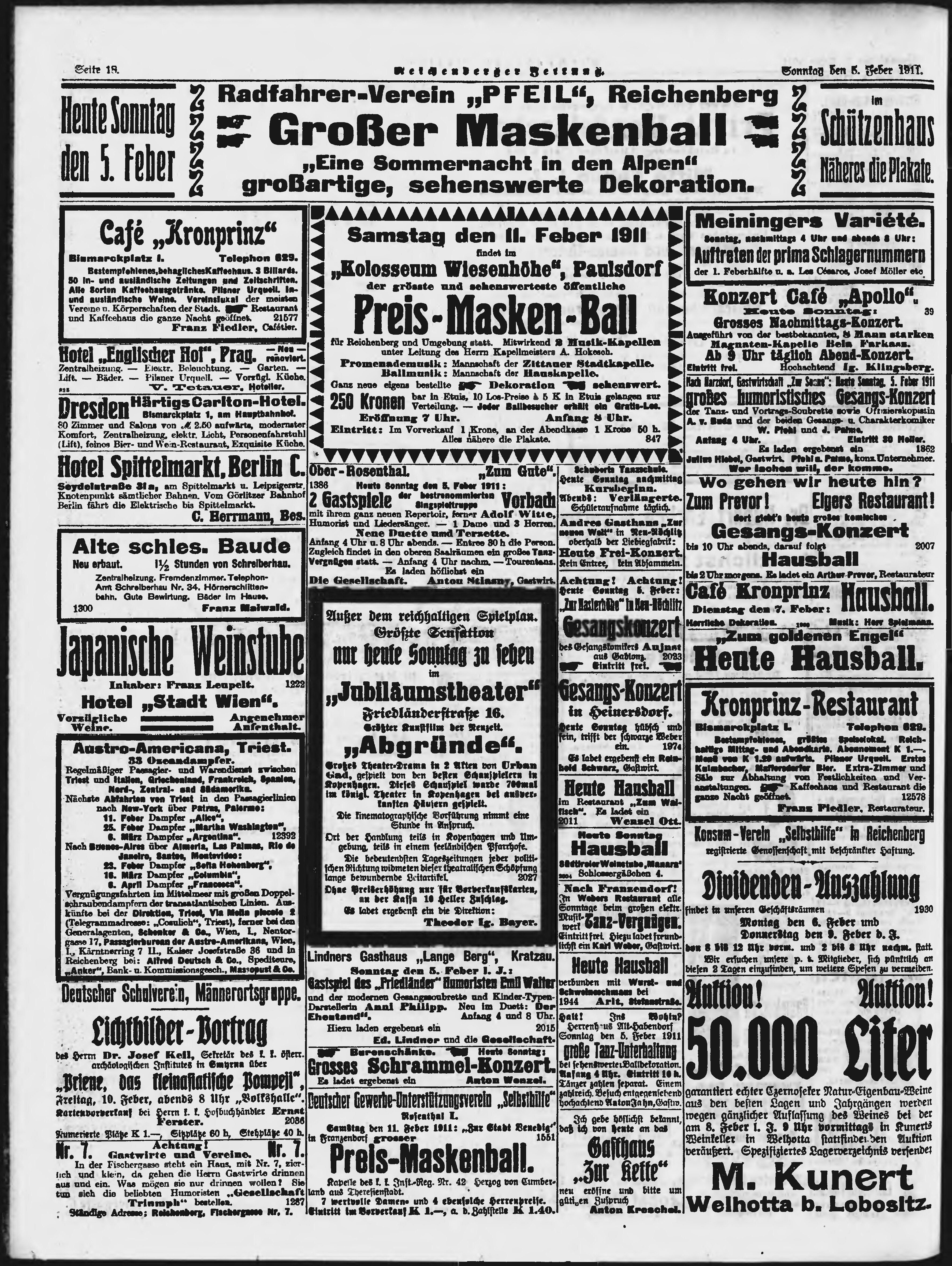 * Datum vydání výtisku: 5.2.1911 Číslo výtisku: 31 Poznámky k výtisku: ranní vydání;