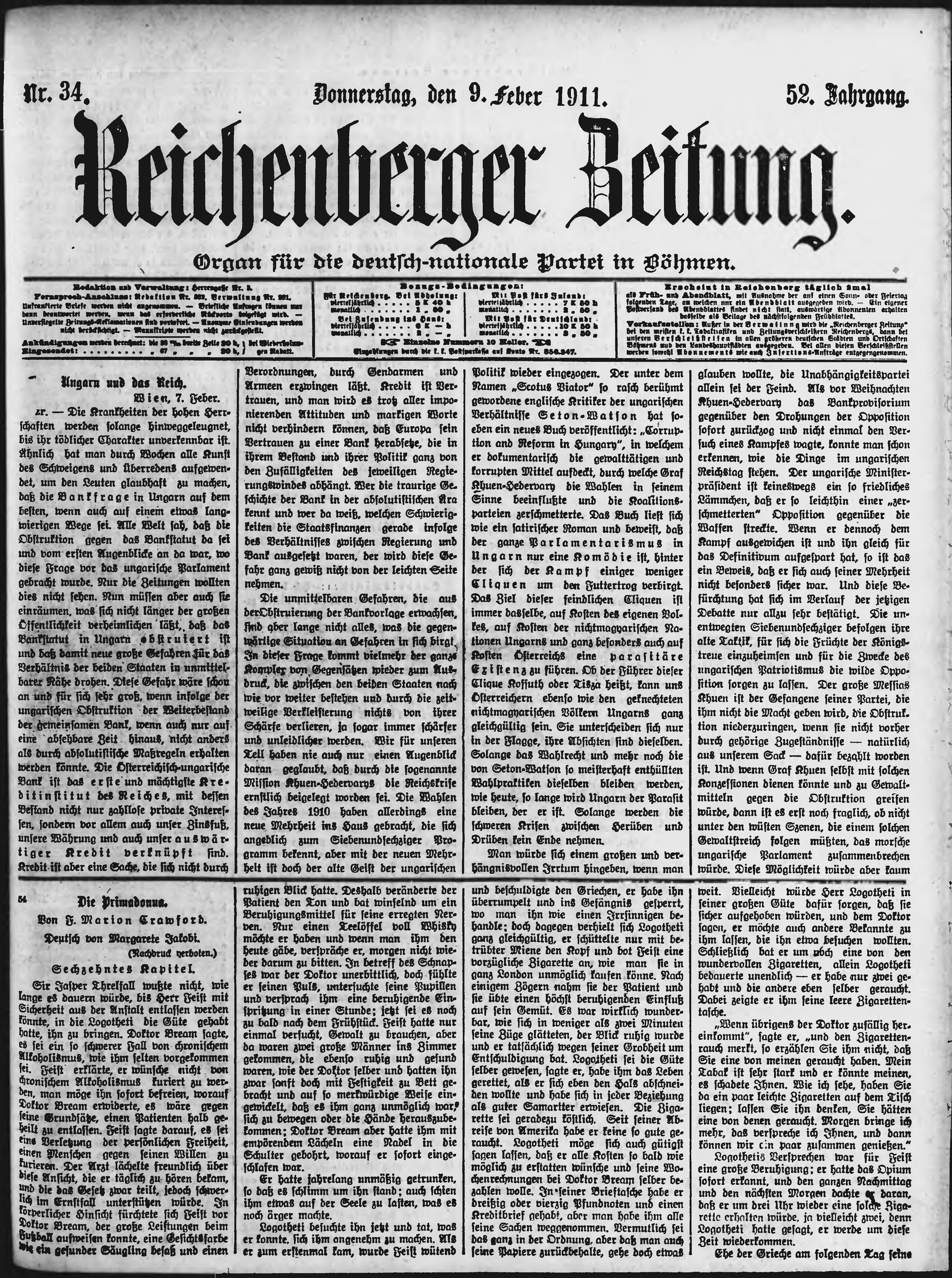 * Datum vydání výtisku: 9.2.1911 Číslo výtisku: 34 Poznámky k výtisku: ranní vydání;