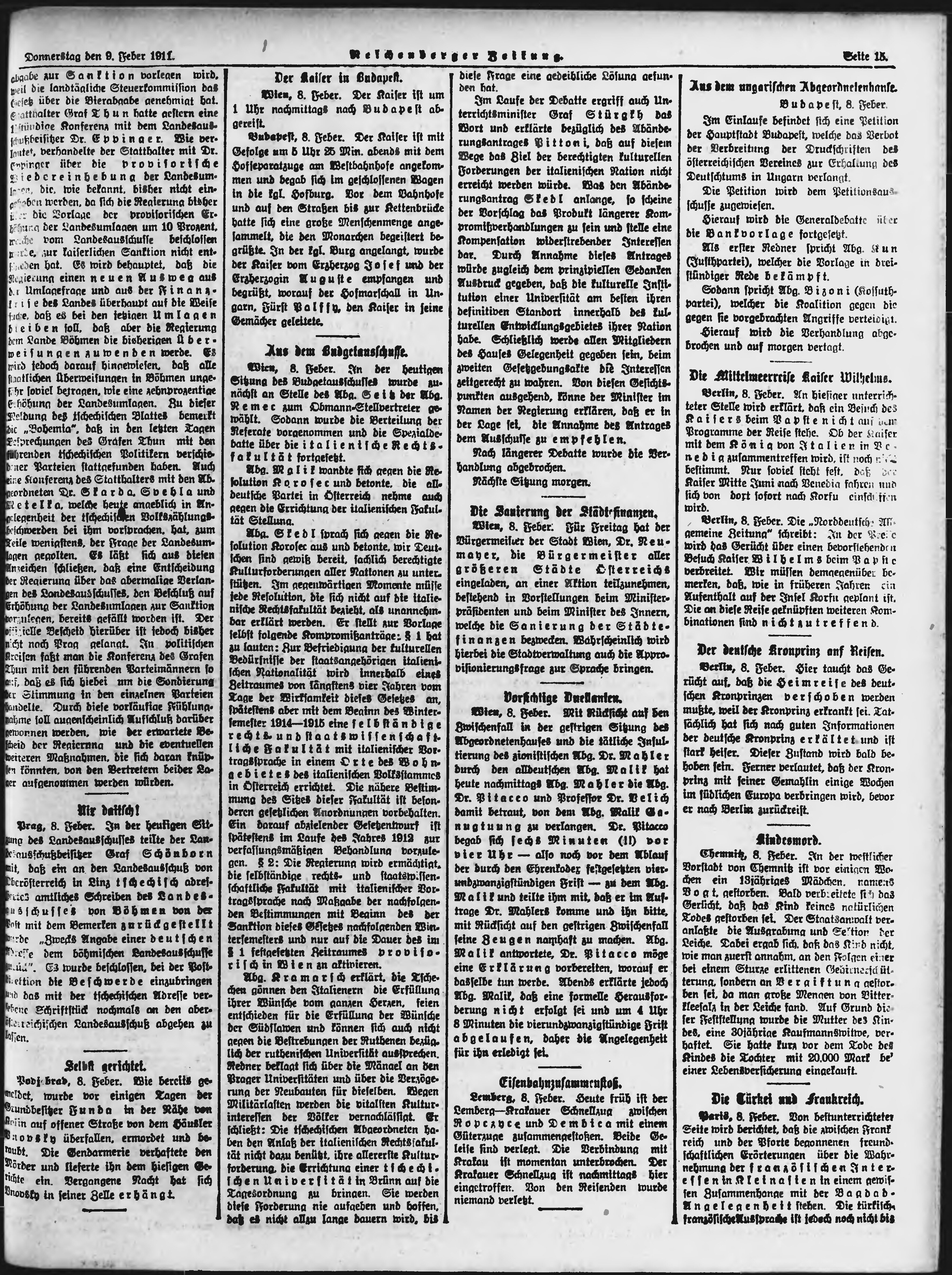 * Datum vydání výtisku: 9.2.1911 Číslo výtisku: 34 Poznámky k výtisku: ranní vydání;