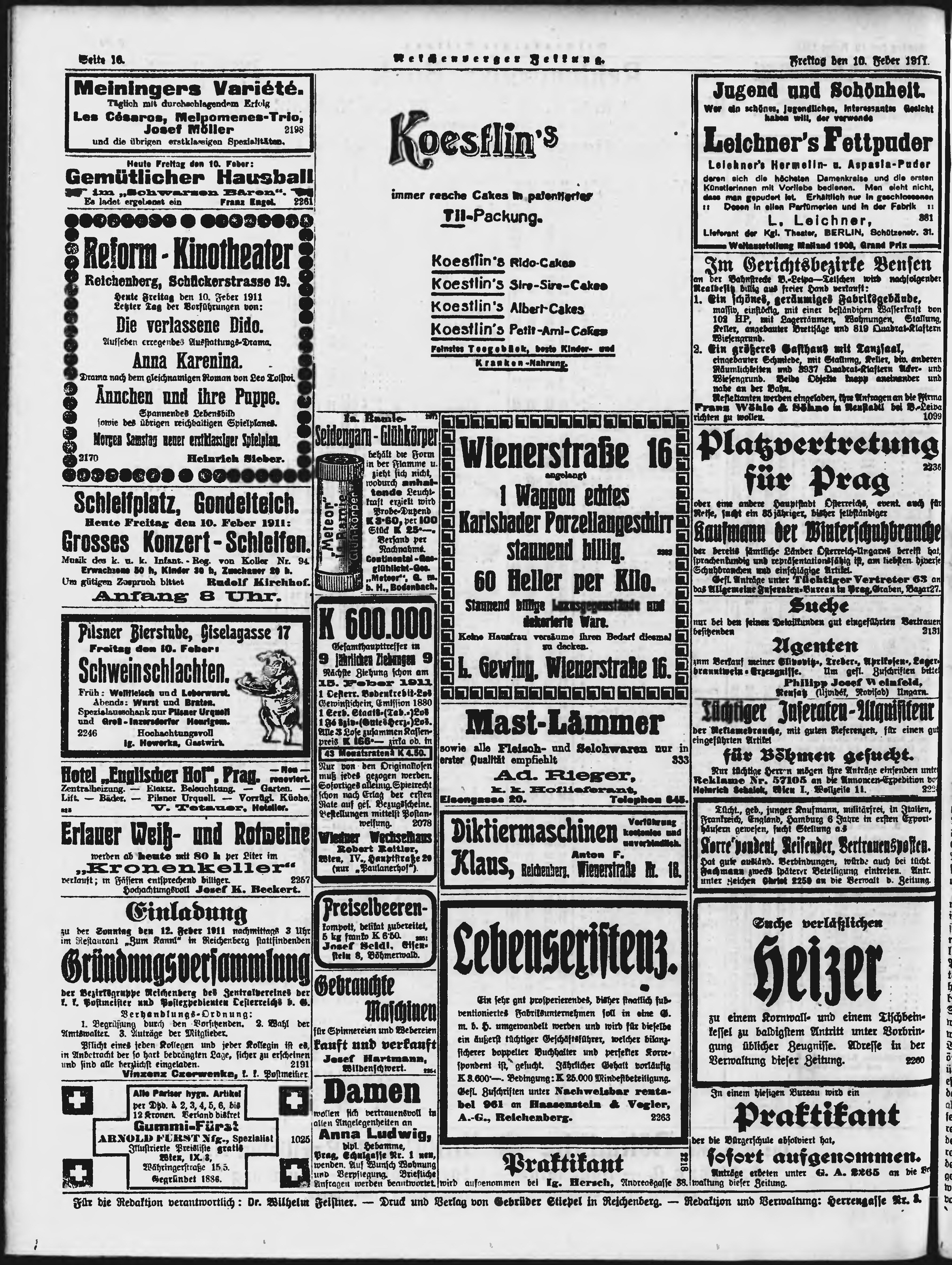 * Datum vydání výtisku: 10.2.1911 Číslo výtisku: 35 Poznámky k výtisku: ranní vydání;