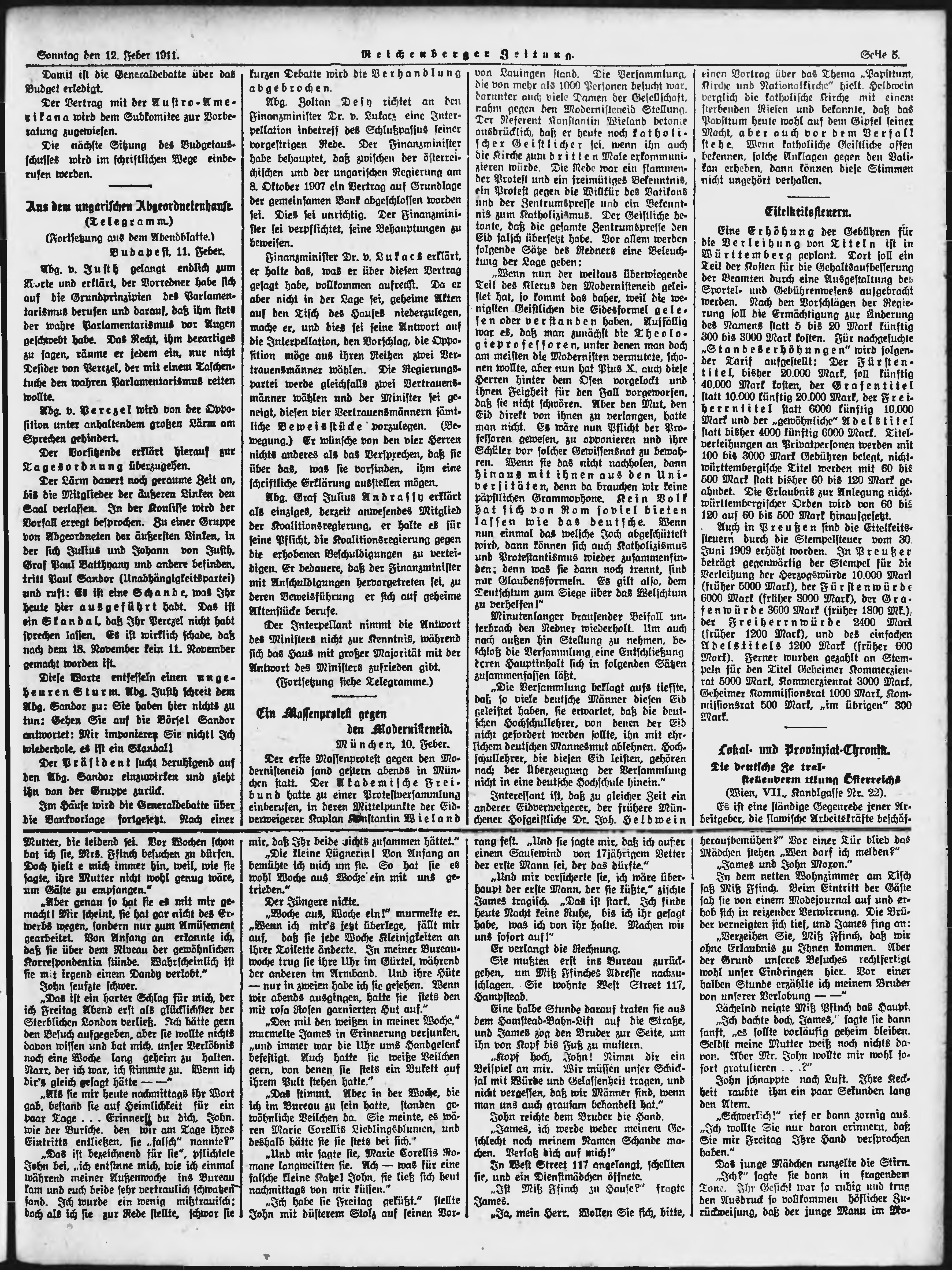 * Datum vydání výtisku: 12.2.1911 Číslo výtisku: 37 Poznámky k výtisku: ranní vydání;