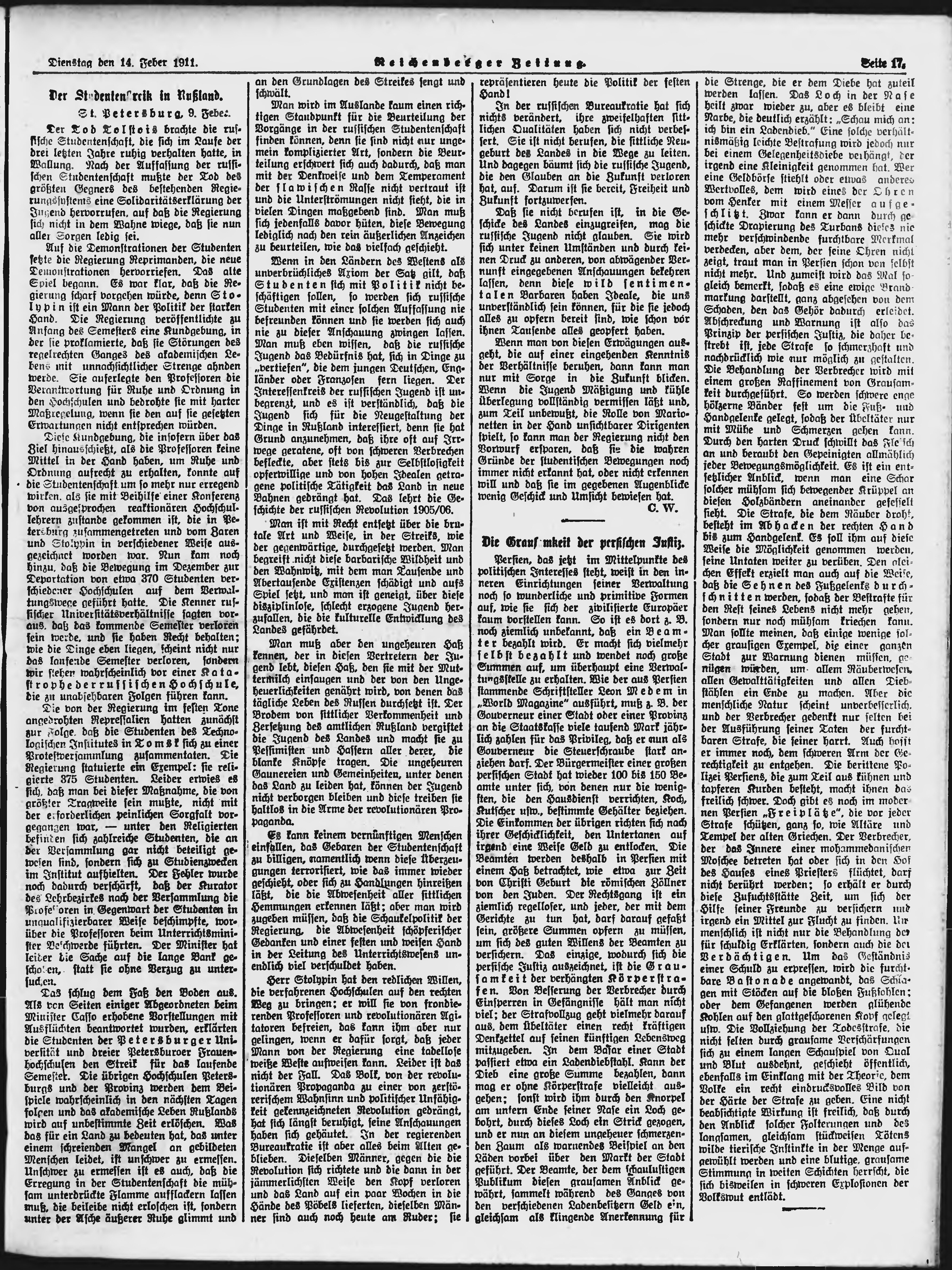 * Datum vydání výtisku: 14.2.1911 Číslo výtisku: 38 Poznámky k výtisku: ranní vydání;