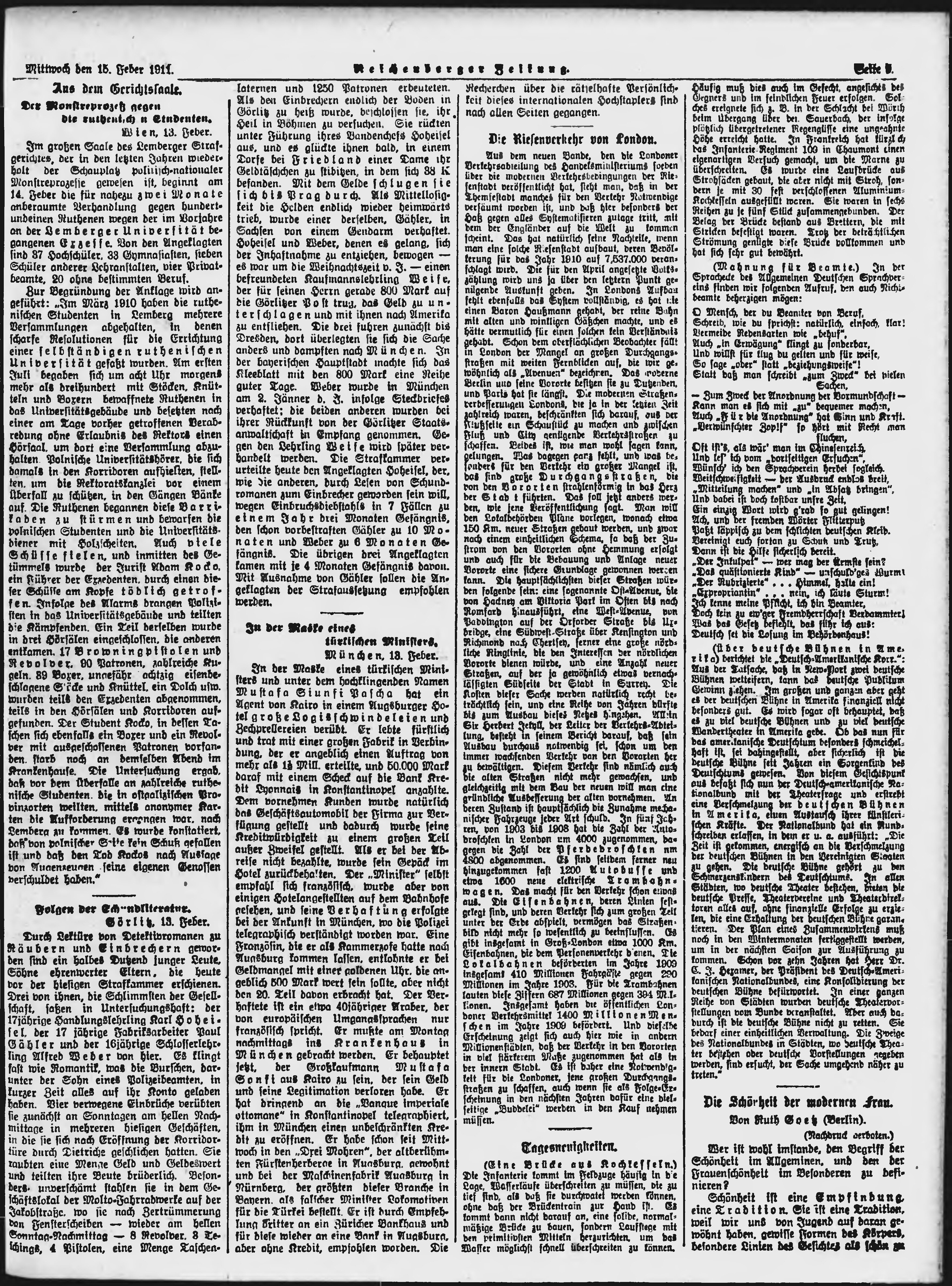 * Datum vydání výtisku: 15.2.1911 Číslo výtisku: 39 Poznámky k výtisku: ranní vydání;