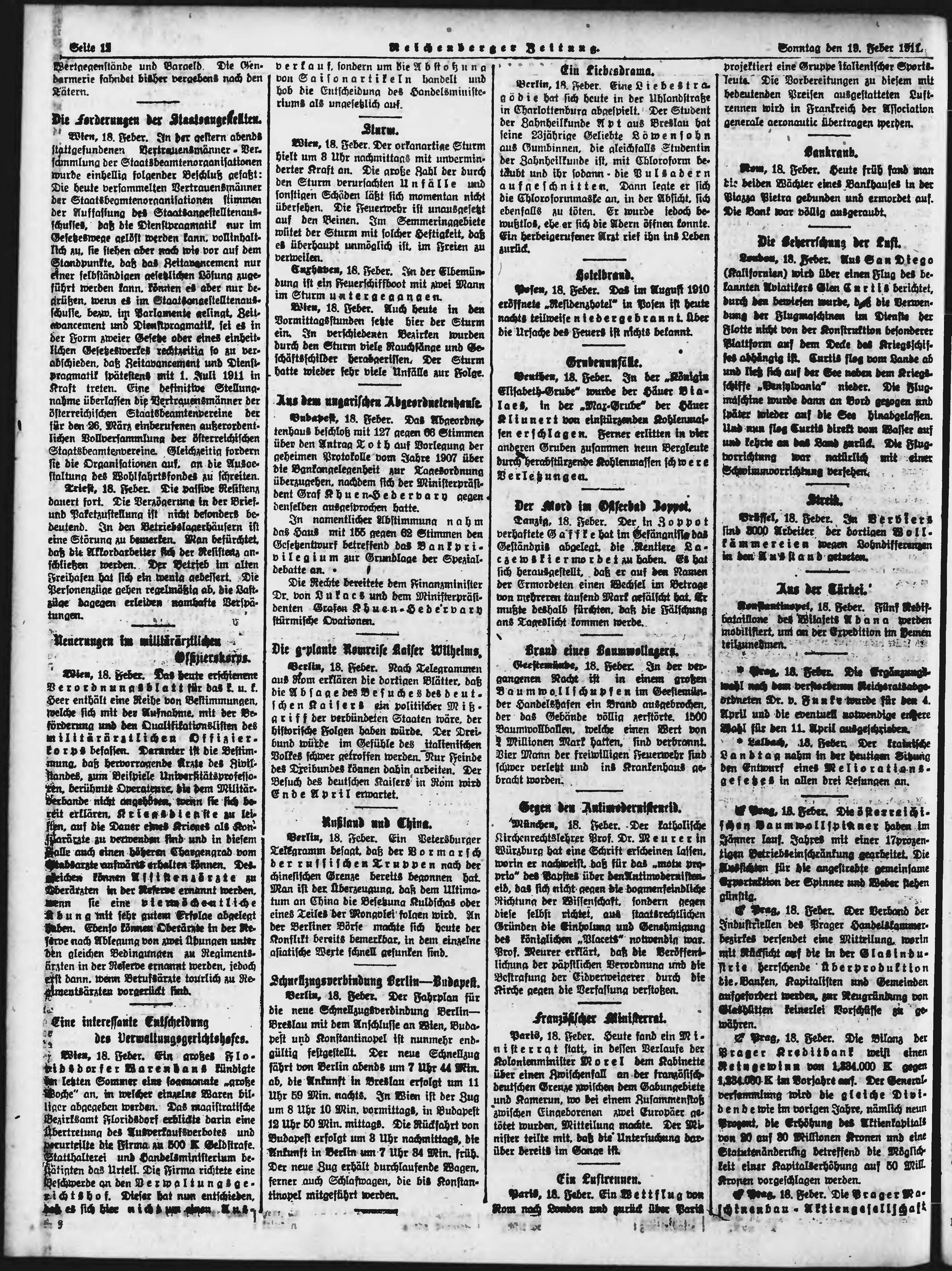 * Datum vydání výtisku: 19.2.1911 Číslo výtisku: 43 Poznámky k výtisku: ranní vydání;