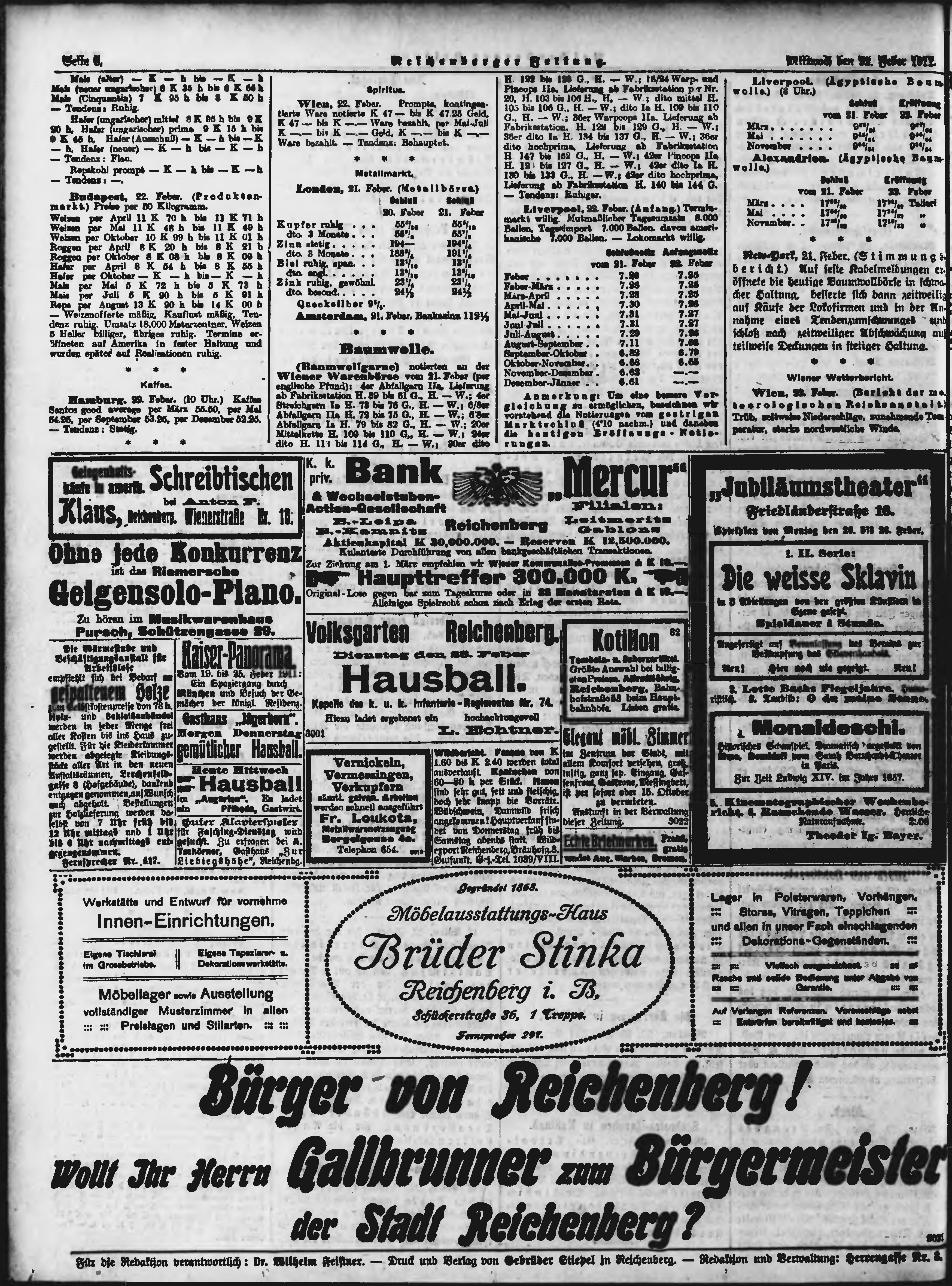 * Datum vydání výtisku: 22.2.1911 Číslo výtisku: 46 Typ výtisku: příloha Poznámky k výtisku: večerní vydání;