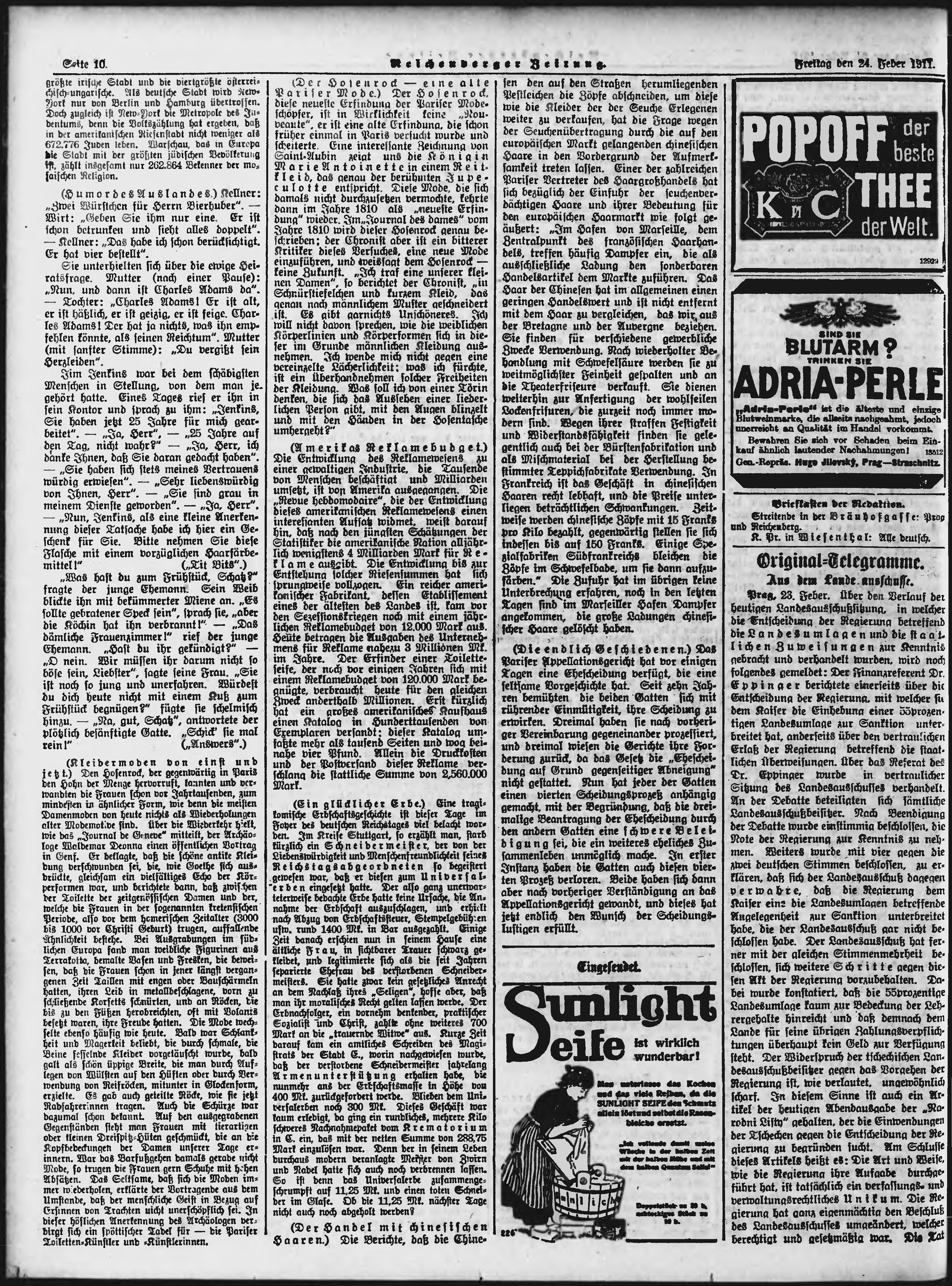 * Datum vydání výtisku: 24.2.1911 Číslo výtisku: 47 Poznámky k výtisku: ranní vydání;