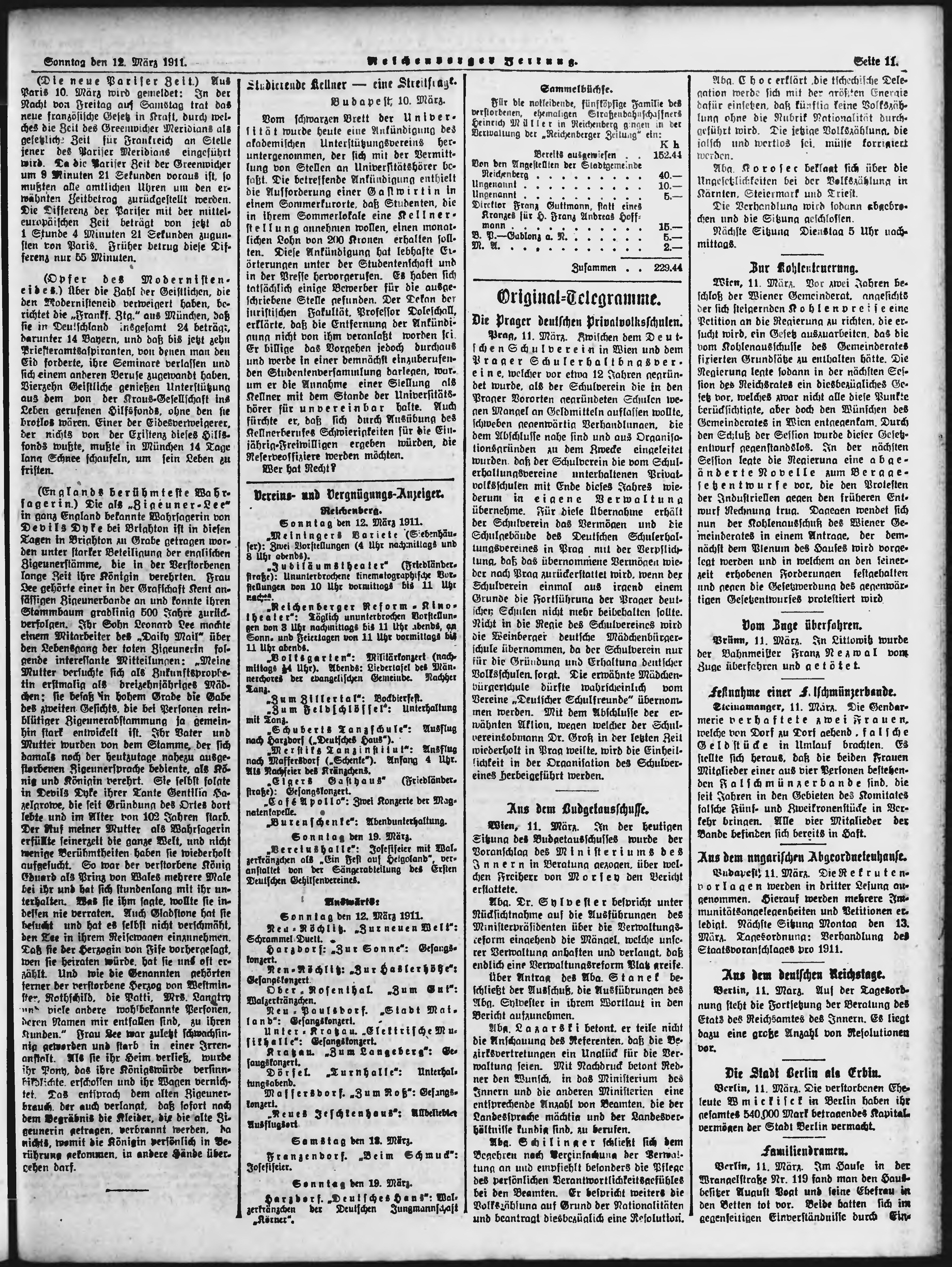 * Datum vydání výtisku: 12.3.1911 Číslo výtisku: 61 Poznámky k výtisku: ranní vydání;